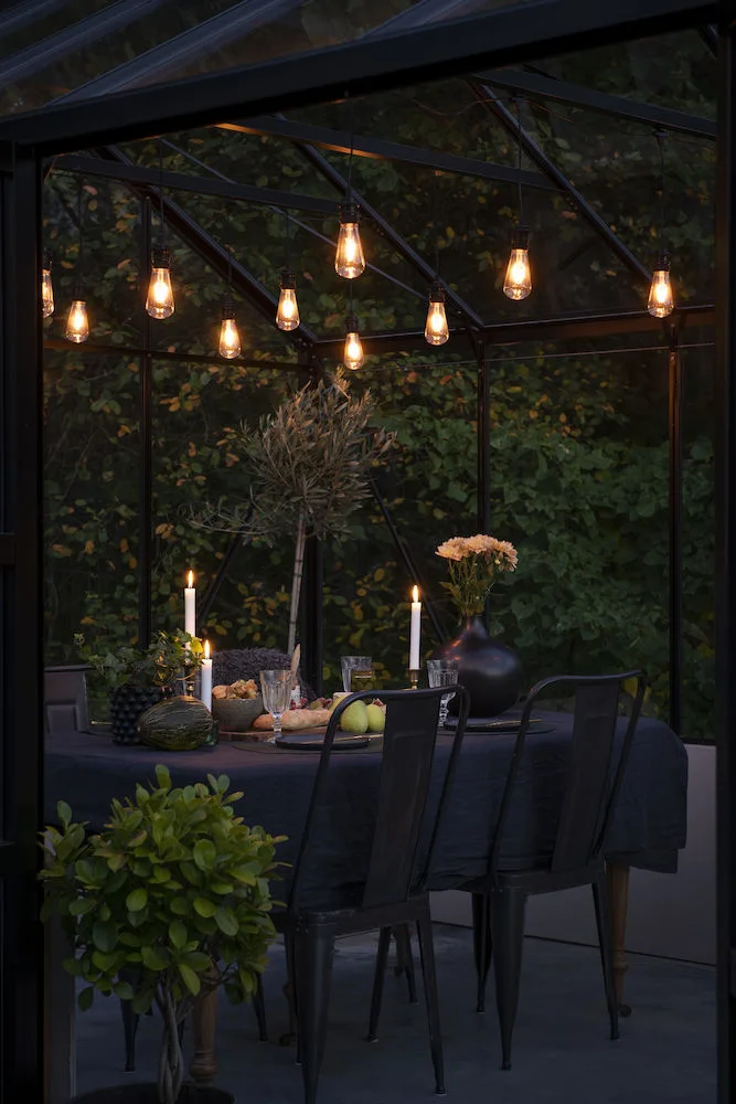 Extend the magic of your existing 10 Amber Bulb LED Start Set with this convenient Add-On Set. Featuring 10 additional warm amber LED bulbs on a black cord, this set seamlessly connects to your existing string lights, allowing you to create an even longer and more dazzling display. Enjoy the energy efficiency and weatherproof design (IP44 rated) that makes these lights perfect for both indoor and outdoor use.