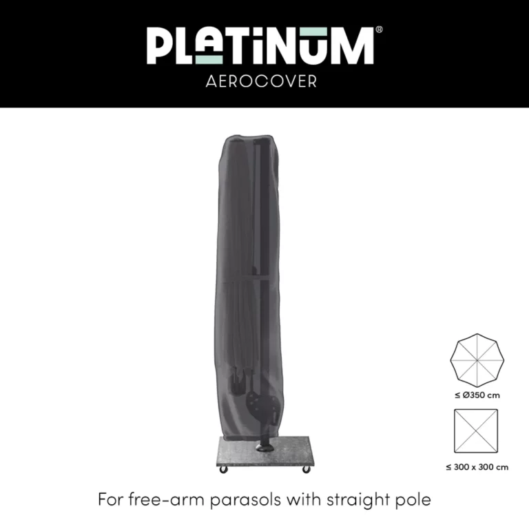 The sewn-in fiberglass rod enables you to cover your parasol easily without the need for a stepladder. The AeroCover fabric is water-resistant, reduces condensation, and helps prevent mold and mildew buildup. Made from solution-dyed fabric with high color fastness, it barely discolors over time due to its colored inner core. The AeroCover extends the lifespan of your parasol, with 100% waterproof fabric and splashproof seams.
