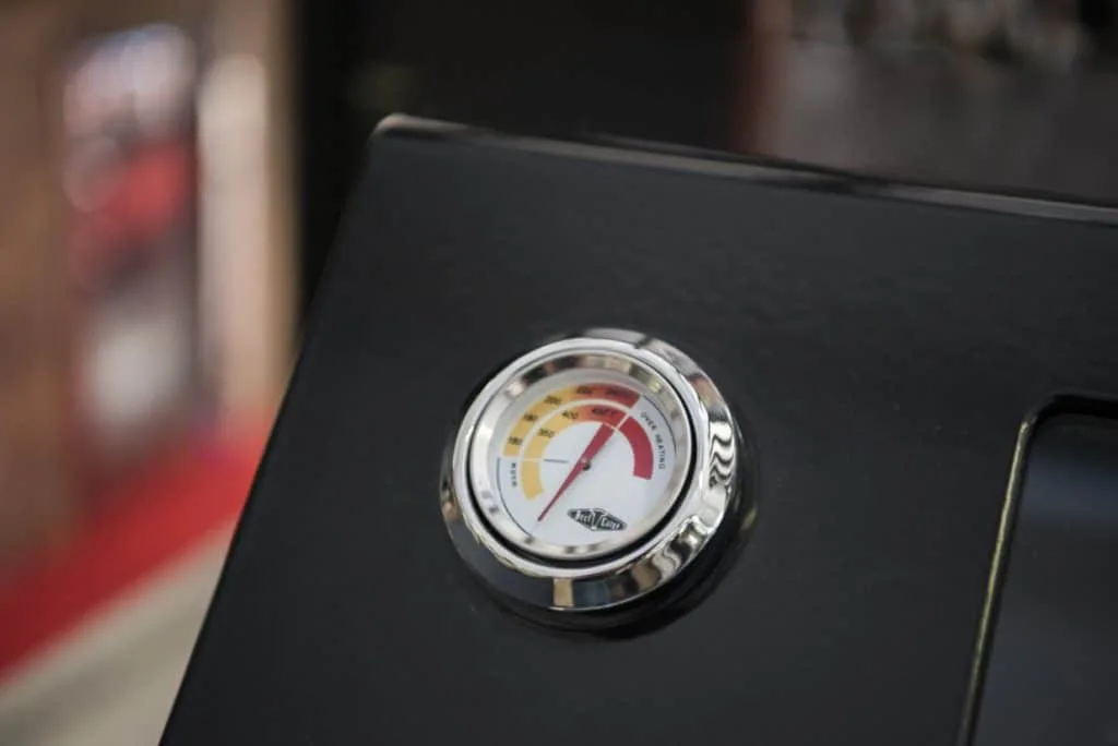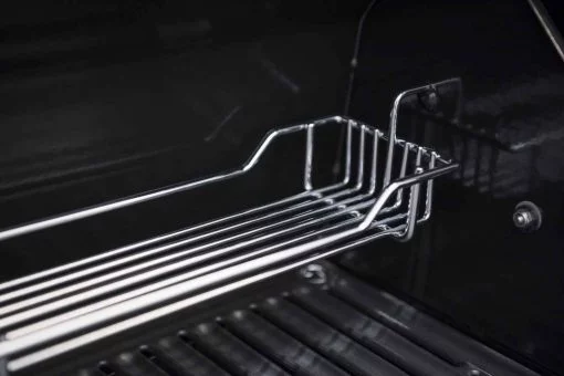 The double-skinned black enamel roasting hood features an integrated temperature gauge and a large viewing window, making it easy to monitor your food while cooking indirectly. Seam-welded and hand-finished chassis lining ensures durability and prevents damaging leaks, while the rollback hood allows the BBQ to sit snugly against the wall.