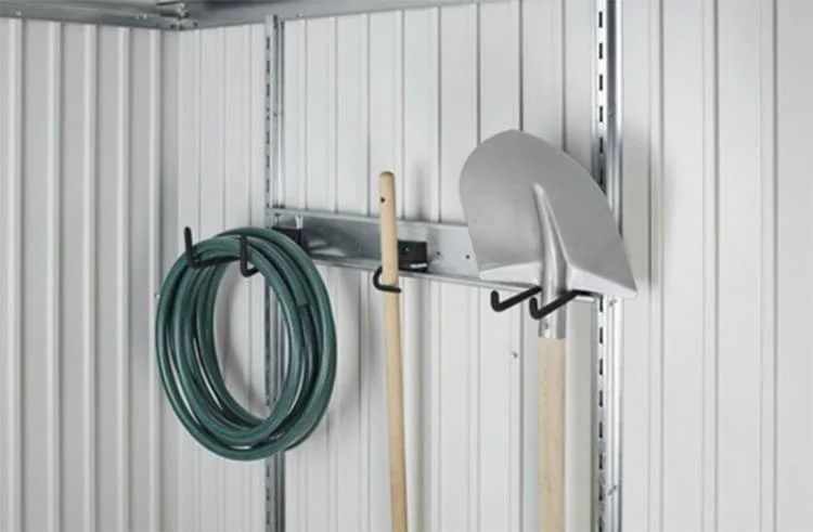 Create additional storage for your Biohort shed with this additional hook set. Perfectly suited for garden tools like shovels, rakes and garden hoses. This Hook Set easily slots between two rails on your biohort shed for easy instillation.