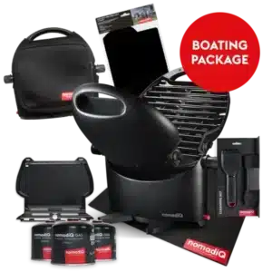 We designed this package to make outdoor cooking simple, safe, and enjoyable – whether you’re anchored in a quiet bay, docked at the marina, or out on open water. By combining the nomadiQ portable gas barbecue with essential accessories, it ensures you have everything you need for perfect grilling on your boat without taking up precious space.
