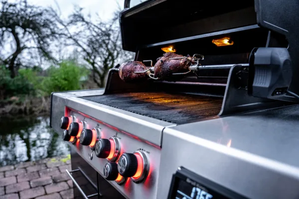 Illuminate your cooking space with the built-in lights, allowing you to grill well into the evening without missing a beat. With the included rotisserie kit, you can take your culinary creations to new heights with succulent rotisserie chicken or tender roasts that will have your guests coming back for seconds.