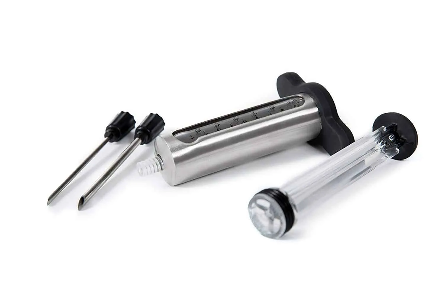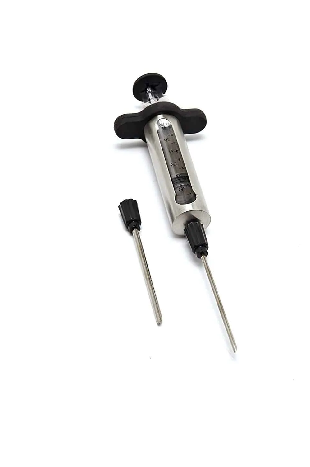 Inject some flavour into your meat with this stainless steel injector. Simply put the required amount of marinade in the chamber and inject it into your food. With markings to help you accurately measure how much marinade you are inserting. This tool also disassembles easily for easy cleaning and alongside its durable stainless steel construction. This is a brilliant tool for adding some flavour into your dishes.