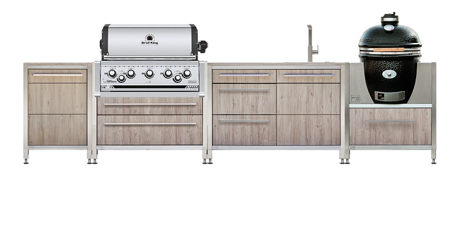 - Unit Breakdown: This configuration features two dedicated grill units, allowing you to explore the diverse capabilities of both the Broil King and Monolith Grill. Additional storage units with drawers can be incorporated based on your needs and space constraints.