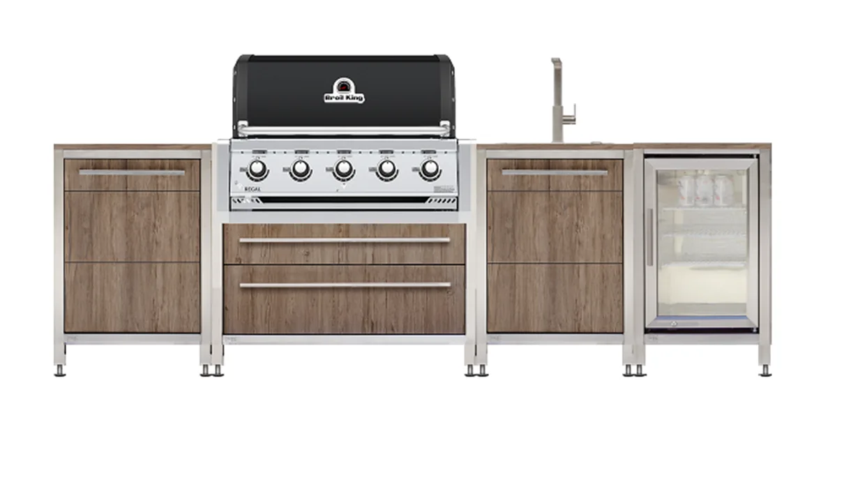 The Burnout Outdoor BBQ Kitchen Plus, featuring the Broil King Regal 520 Black grill and a Caso BBQ-Cooler, transcends the boundaries of a simple kitchen; it's an invitation to create unforgettable outdoor experiences.