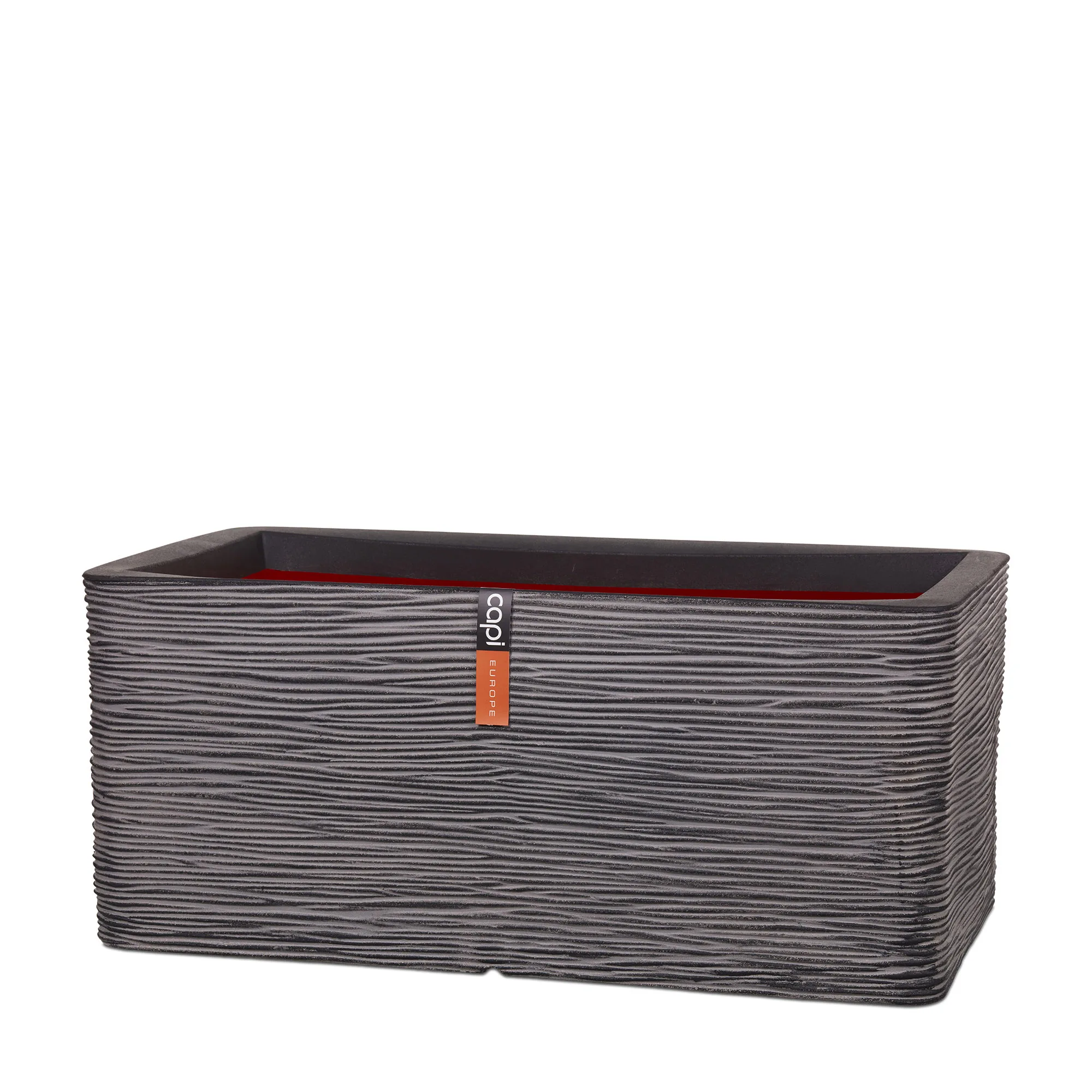 The Capi Rectangular Rib Black Planter, with dimensions of 73 x 39 x 32 cm and a 77-liter capacity, seamlessly combines modern design with practical functionality, ensuring a healthy environment for your plants.