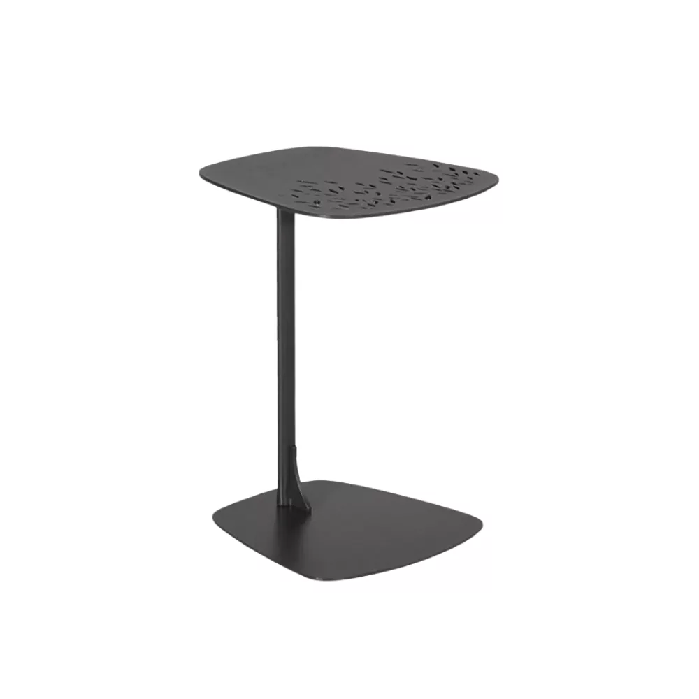 The Dorcas Side Table seamlessly blends form and function. Made of powder-coated aluminium in Anthracite colour, which makes it durable and weatherproof. Dorcas Table effortlessly fits under most sofas or armchairs, adding versatility to any living space. Table top is complemented by many captivating hollow leaf patterns, adding a touch of luxury and elegance.