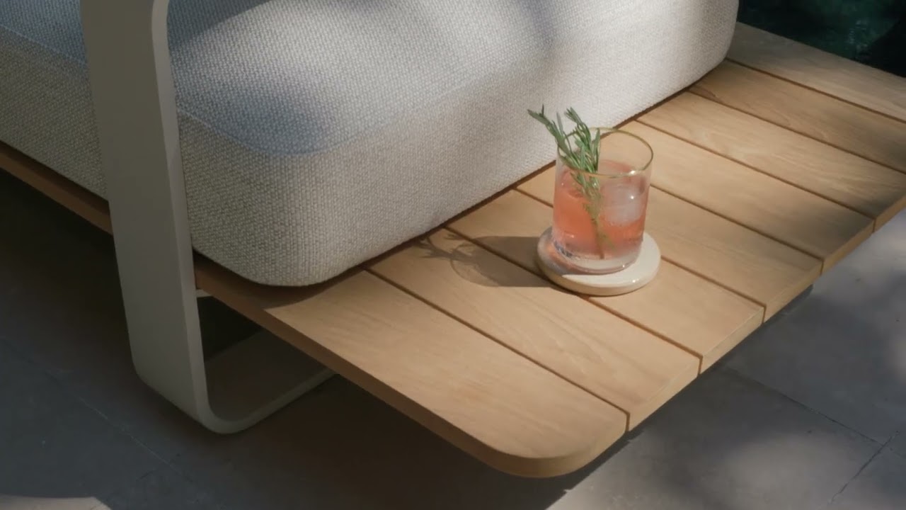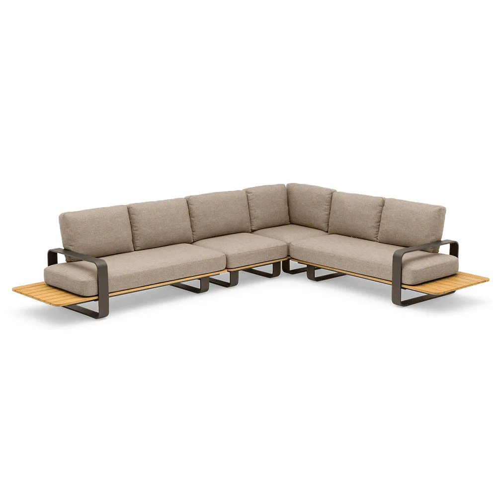 This modular collection features a durable aluminium frame, finished in weather-resistant taupe. Its soft, rounded contours and low tubular legs create a floating look that feels light and modern. Designed to suit any outdoor space, this corner set offers comfort without compromising on style.