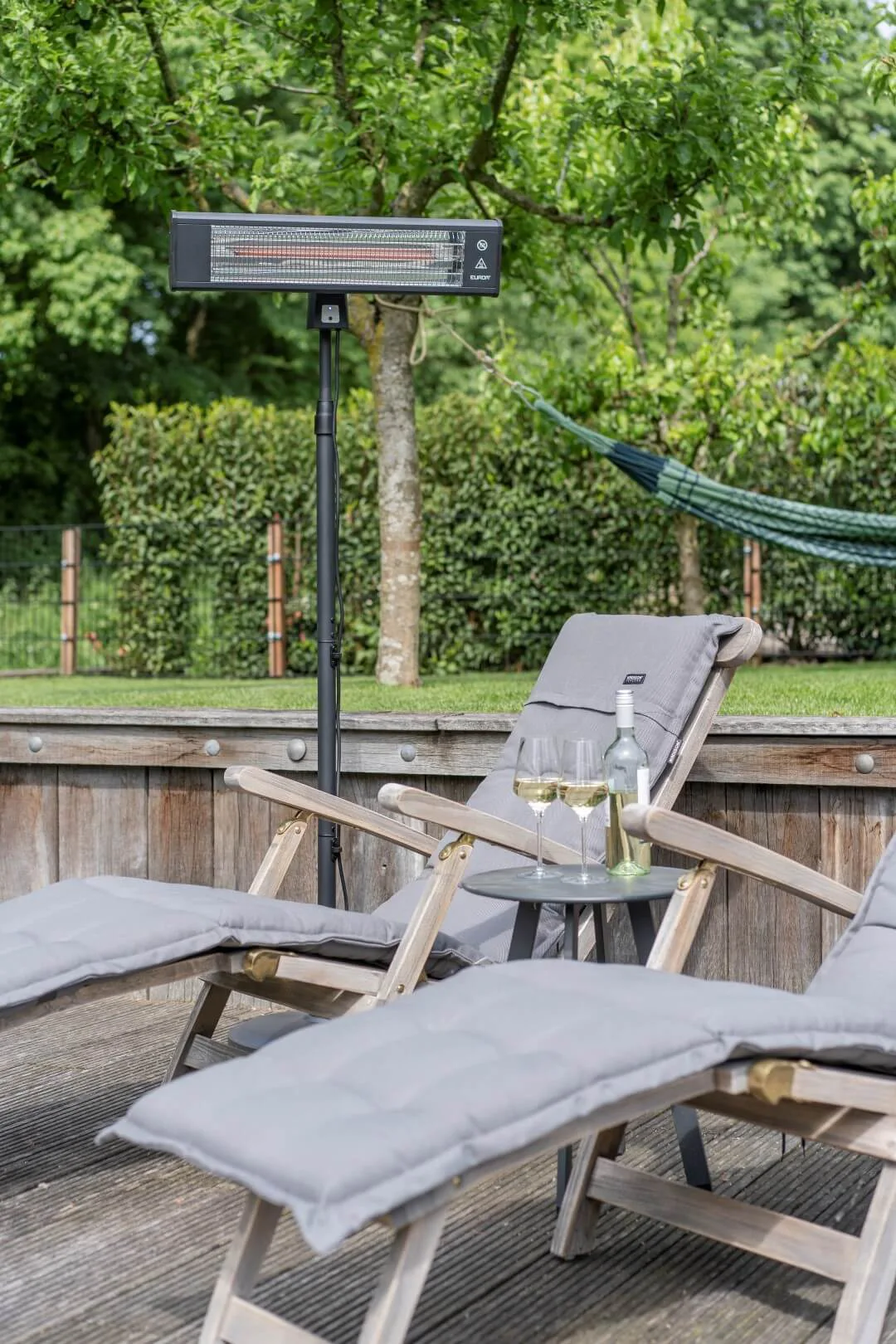 Designed for terraces. The Eurom TH1800S is the best in the class heater. Featuring a long-lasting carbon lamp that conducts and directs heat. This heater can be adjusted to spread heat in the direction you choose with the multi-functional stand included. With a large range of 10 – 15 m², this heater is superb for terraces and balconies. And you can adjust the heat with the included remote control from anywhere you need to. Another winning heater from Eurom, this heater is the perfect way to enjoy the outdoors at night.