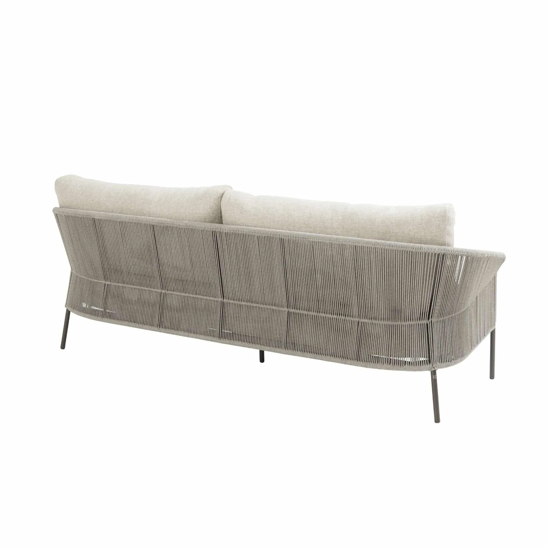 The arm and back panels feature 5mm tightly woven polypropylene rope in Natural Oak Grey.