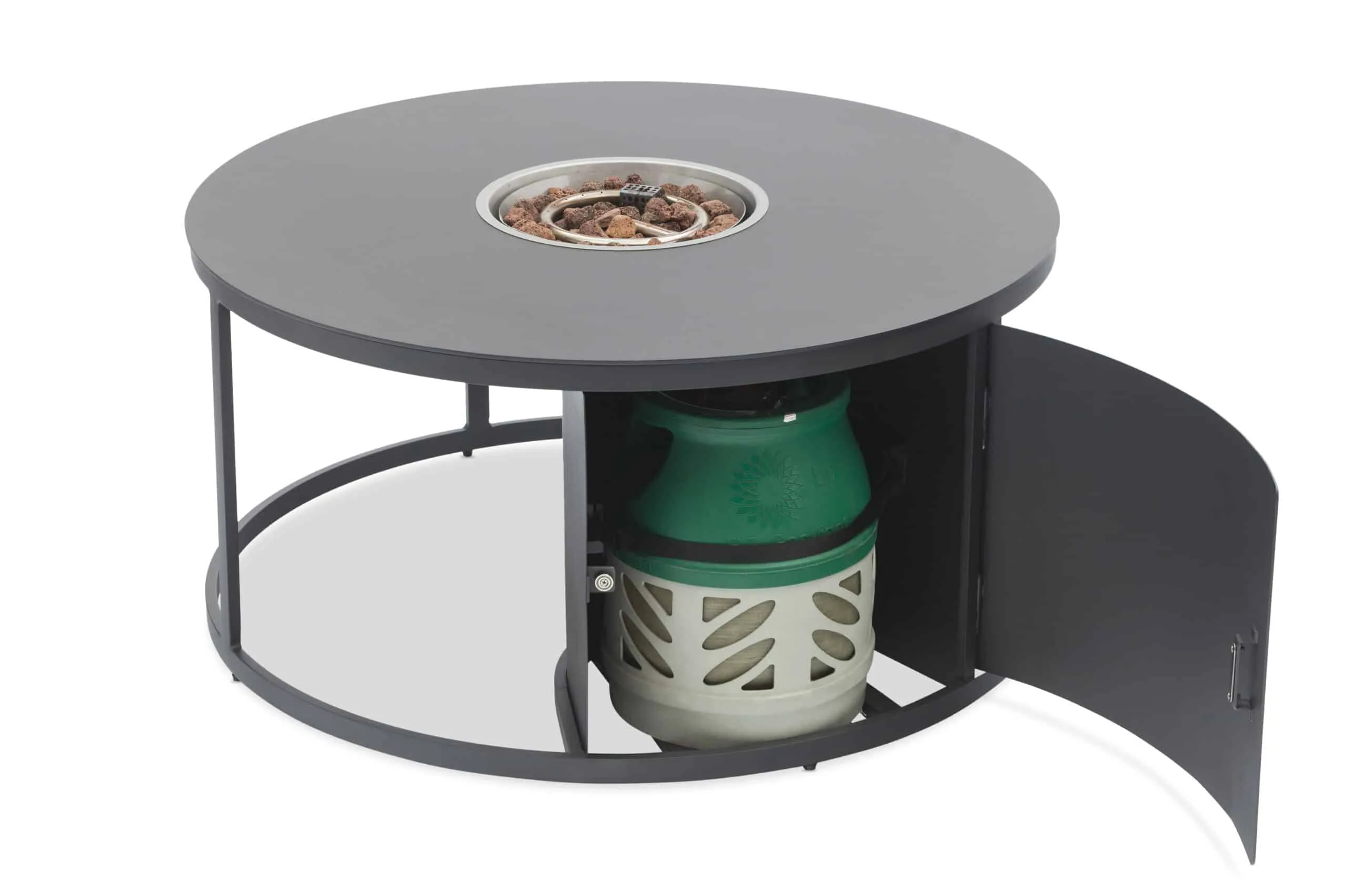 This Taupe coloured range of outdoor firepits is ideally suited for any outdoor lounge sofa arrangement and offers a generous surface area for drinks or snacks. This clever design conveniently conceals the 5kg propane gas tank within its housing. no more visable gas hoses or covers required