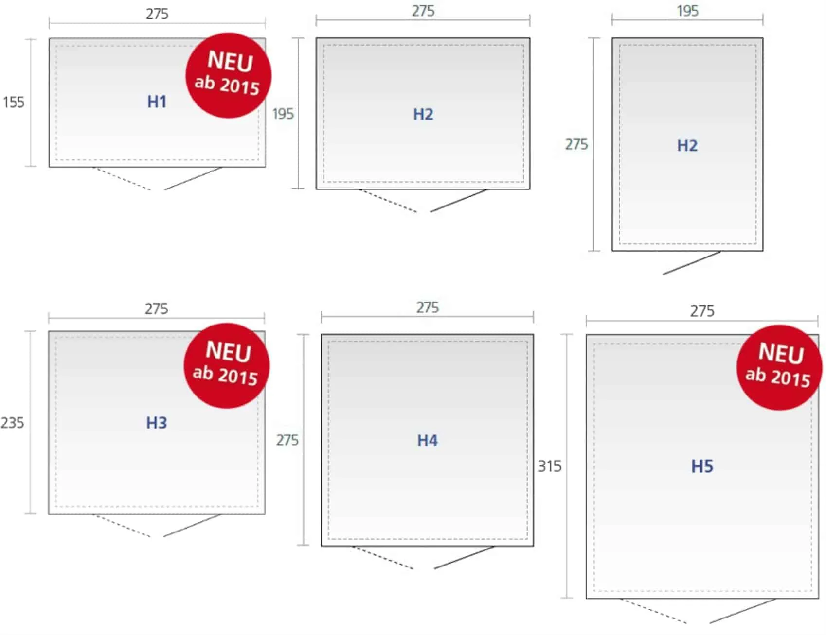 | H5 | 275 x 315 x 222** | 252 x 292 x 210 | 7,36 | 257 x 297 |