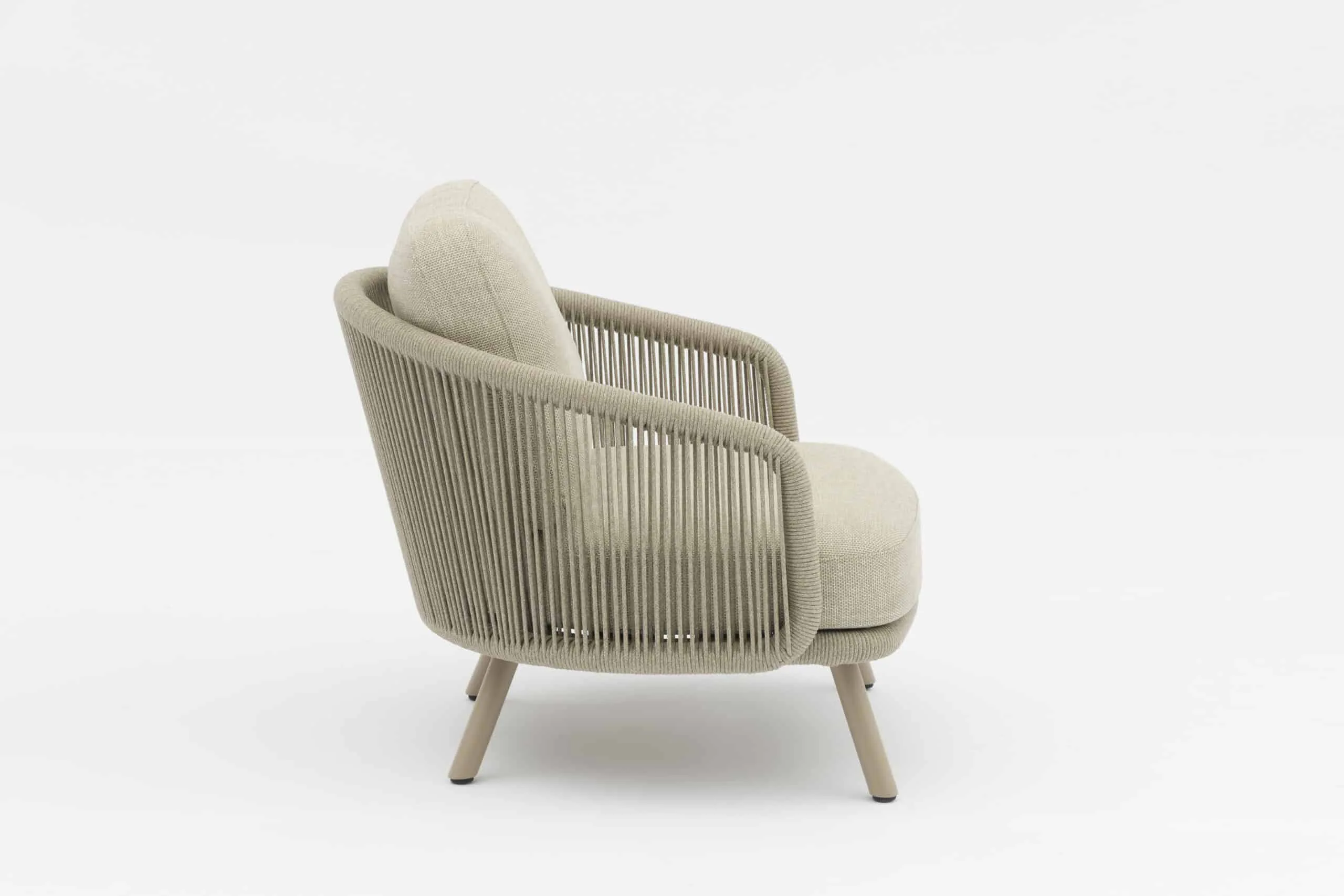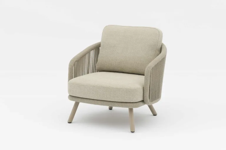 With its concise yet elegant outline, Harbour Lounge Armchair effortlessly brings a timeless aesthetic to any outdoor space. This timeless collection is exclusive to The OutdoorScene with its  distinctive vertical weave pattern, created with 6mm polyester rope, lends to both traditional or modern surroundings. The combination of a powder-coated aluminum frame and exposed cushions enhances its appeal, making the Harbour Lounge Armchair an ideal choice for your outdoor living area