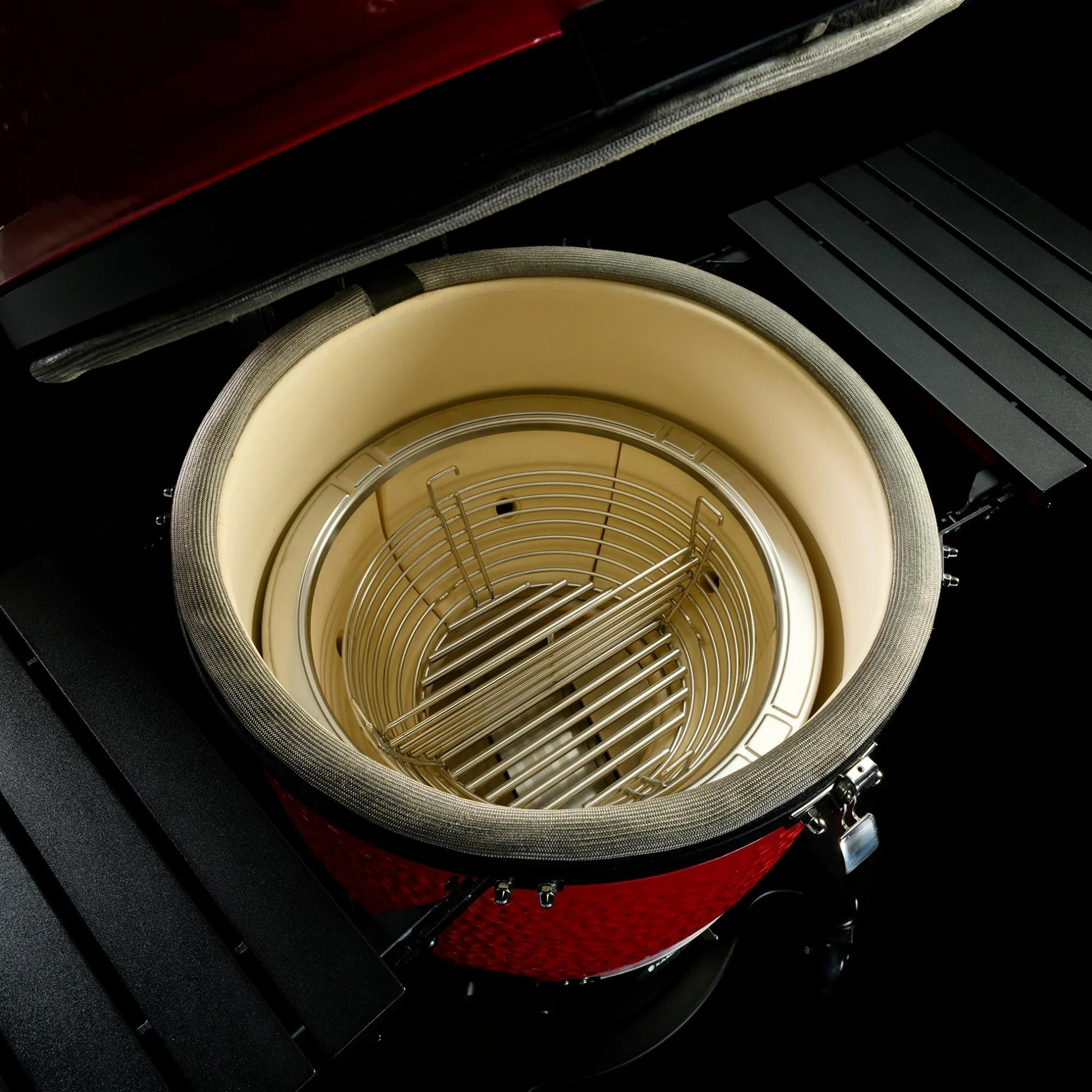 With additional features like a stainless steel latch, AMP Firebox, stainless steel cooking grates, built-in thermometer, finished folding aluminum side shelves/handle, grill gripper, and ash tool, the Komado Joe Big Joe® III is equipped to deliver the most premium grilling experience available.