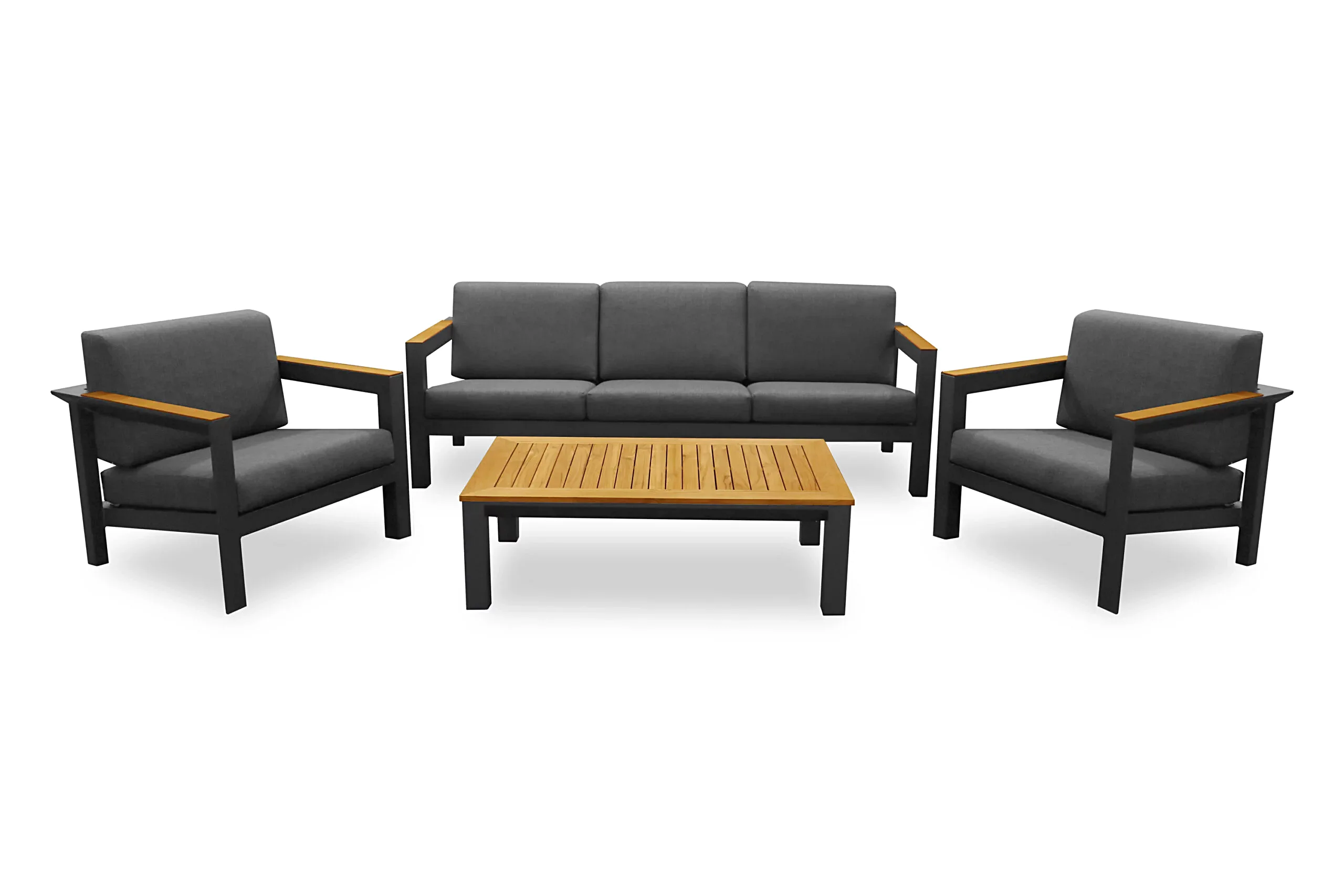 A modern and stylish sofa set, the Lanta outdoor furniture set is extremely durable and it features comfortable outdoor sofa seating. This sofa set's square lines make for a unique look. With powder-coated aluminium frames for protection against the elements. The seats feature a "layback" seat design for comfort and relaxation.