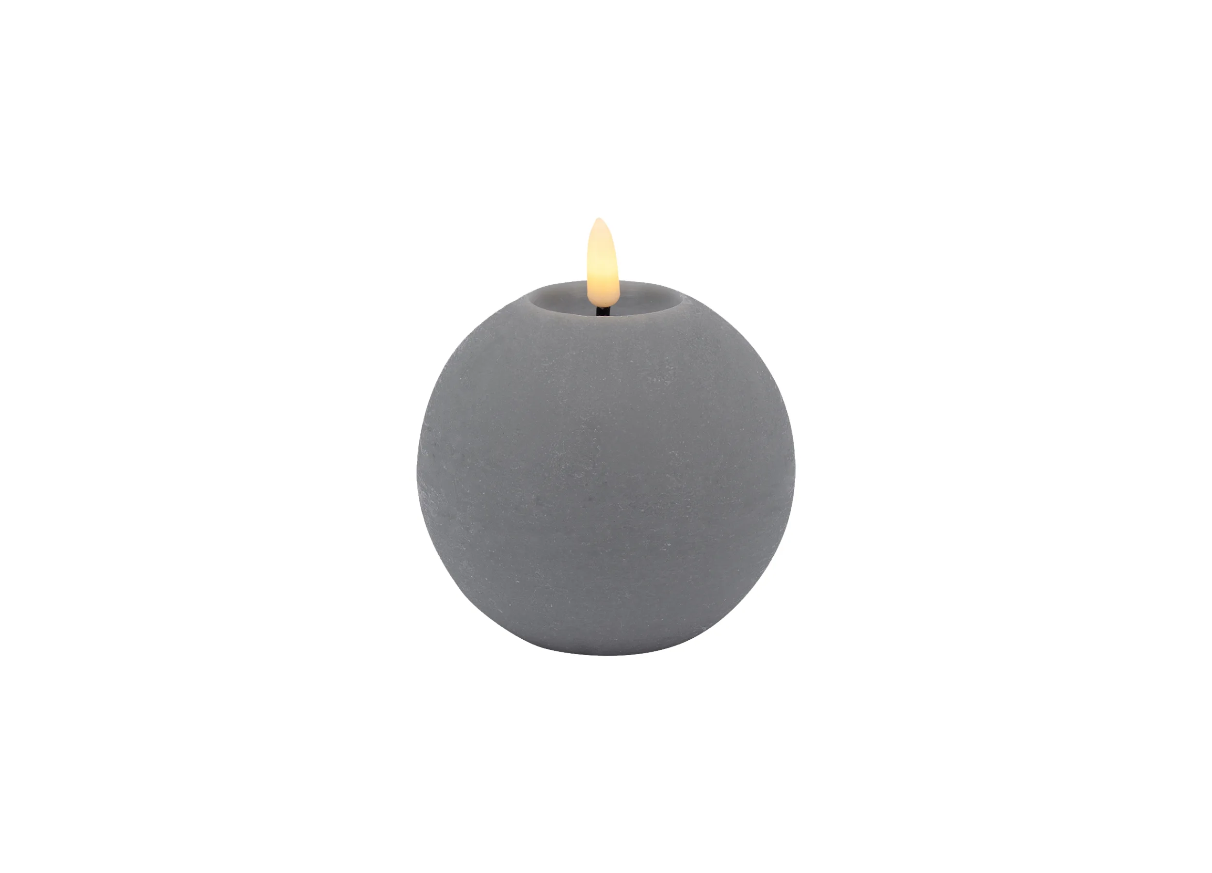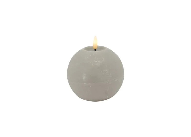 Add a touch of whimsical charm and rustic elegance to your décor with this LED ball candle. The classic taupe, cream or grey finish and flickering 3D warm white flame create a warm and inviting ambiance. Measuring 10 cm in diameter and 8.5 cm tall, this flameless candle is perfect for mantels, centerpieces, or anywhere you desire a soft, glowing accent. Battery operated for easy placement, enjoy the beauty of candlelight without the mess or fire hazard.