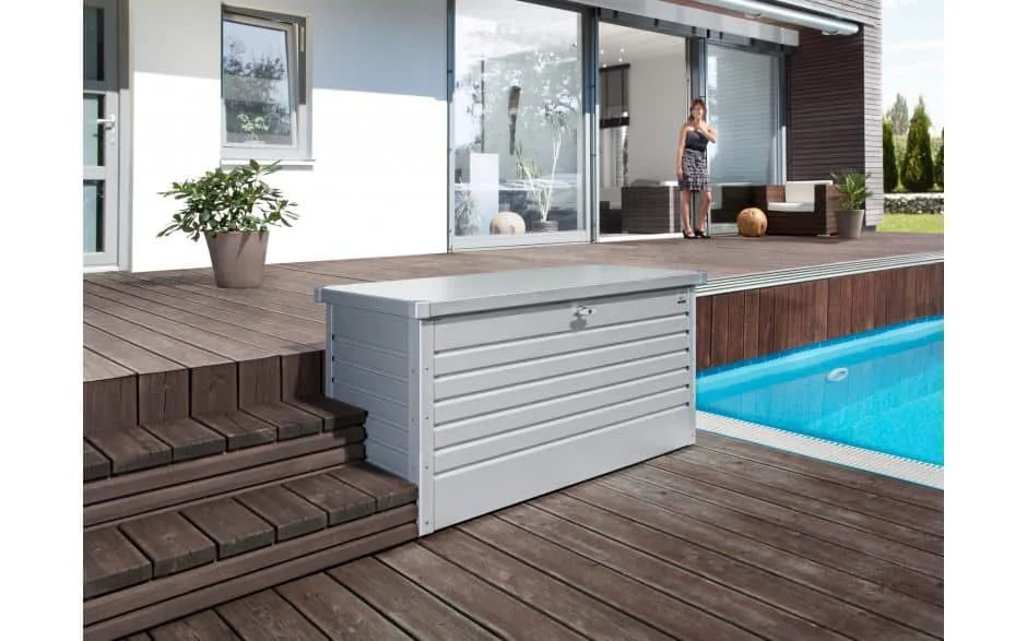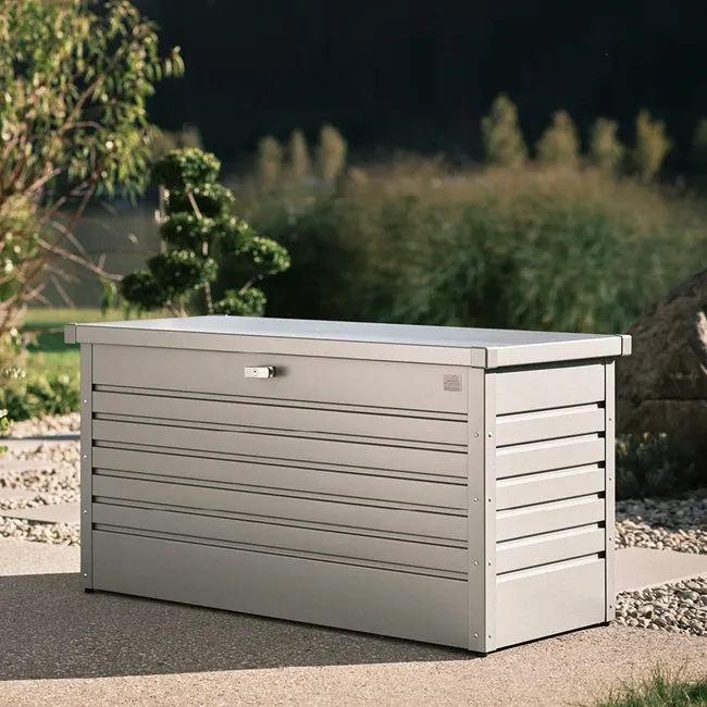The Biohort LeisureTime Storage Box is the perfect outdoor storage solution, offering ample space for cushions, sun loungers, toys, and camping gear. Crafted from hot-dipped galvanized steel, it provides durability and weather resistance. The flat, reinforced lid ensures easy cleaning, while the gas-assisted opening allows smooth access. Available in five sizes and five colours, it’s designed to fit any outdoor space. Comes with 20 Years of Warranty. Order yours today for a clutter-free garden!