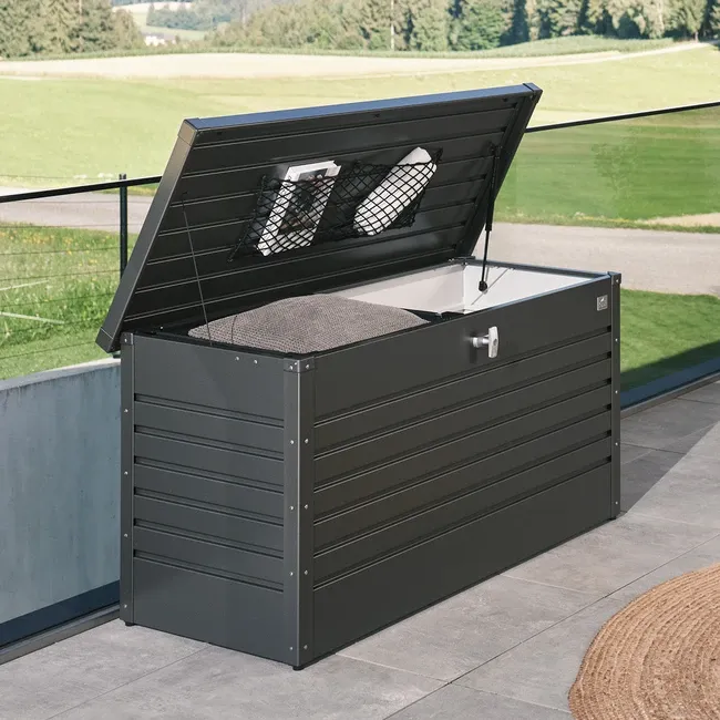Declutter your outdoor space with the Leisuretime Biohort Storage Box, a functional and stylish solution designed to store seat cushions, sun loungers, toys, sports gear, and camping equipment. With five available sizes and five elegant colours, it seamlessly integrates into any garden, patio, or balcony.