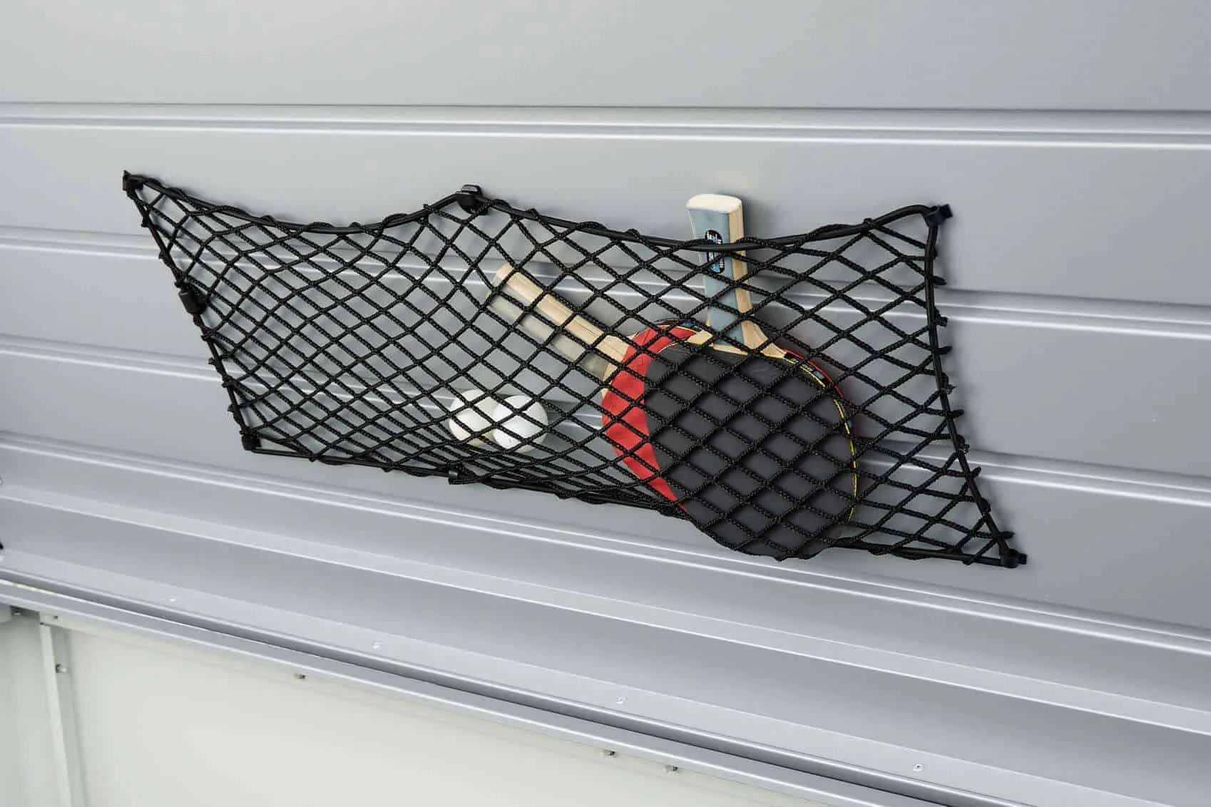 Lid Storage Net for storing small objects. It is easily attached to the inside of the lid. In the LeisureTime Box two nets can be attached side by side (including fixing material).