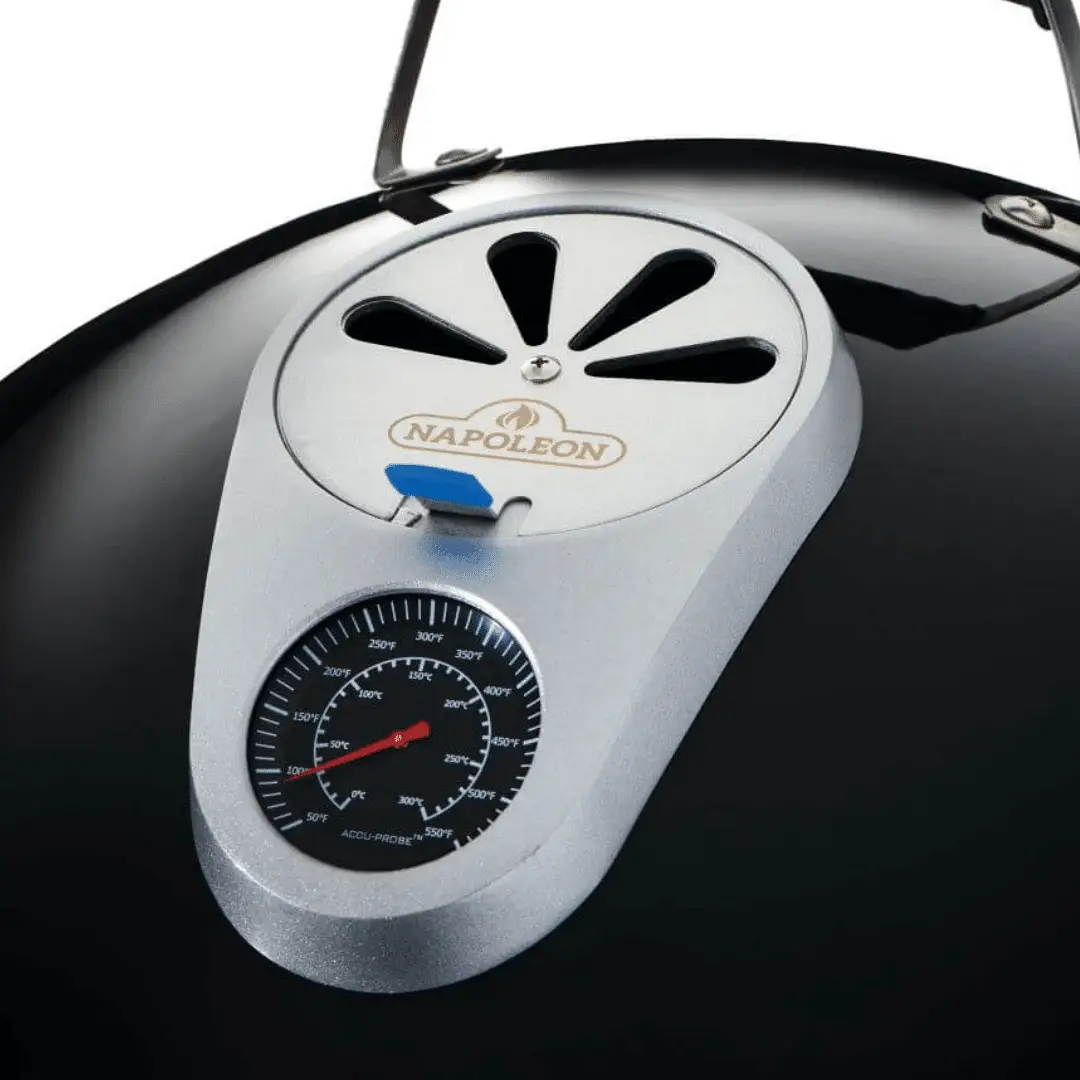 The Napoleon Apollo 22 Smoker makes low-and-slow smoking easy and reliable. This charcoal smoker lets you cook brisket, ribs, fish, poultry, and vegetables until they are juicy, tender, and full of flavor. The insulated lid handle and ACCU-PROBEâ„¢ thermometer help you maintain precise temperatures throughout the cook.