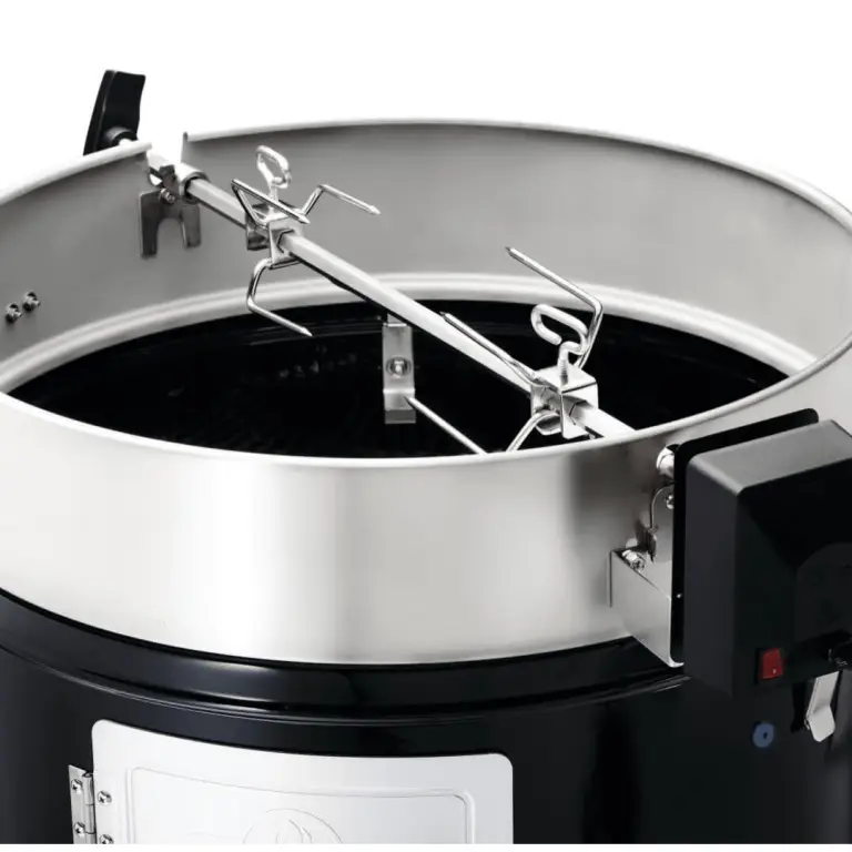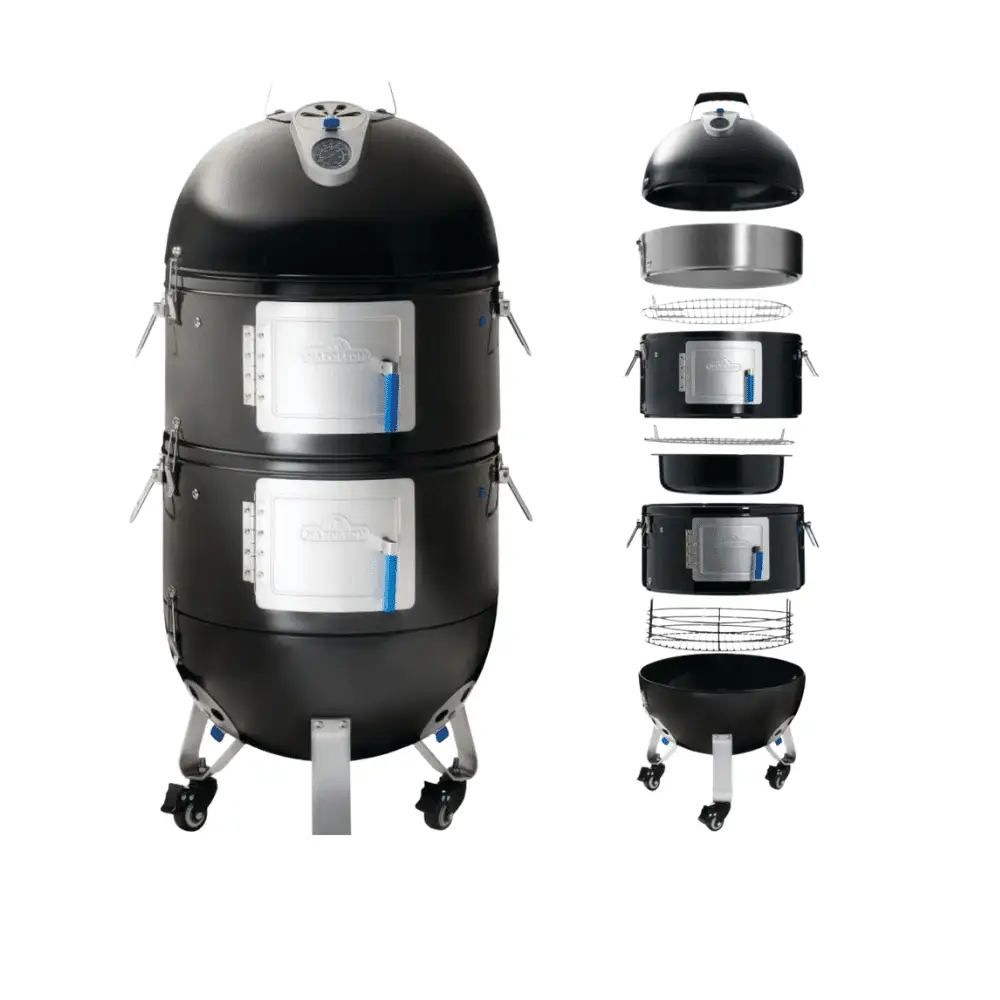 Adjust the smoke vents to control the intensity of your flavor, while the stainless steel rotisserie ring and hanging bar make smoking sausages or fish effortless. A silicone-sealed probe port and large insulated doors provide easy access, and 304 stainless steel cooking grids ensure even heat distribution.