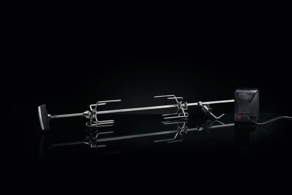The kit features a heavy-duty, square stainless steel spit rod that ensures balanced rotation and wobble-free cooking for even up to 15 lbs of food. The powerful, mains-powered motor delivers consistent rotational force, guaranteeing even cooking throughout. Two commercial-quality meat forks with easy-to-use thumb screws securely hold your food in place, preventing slippage and ensuring perfect results.