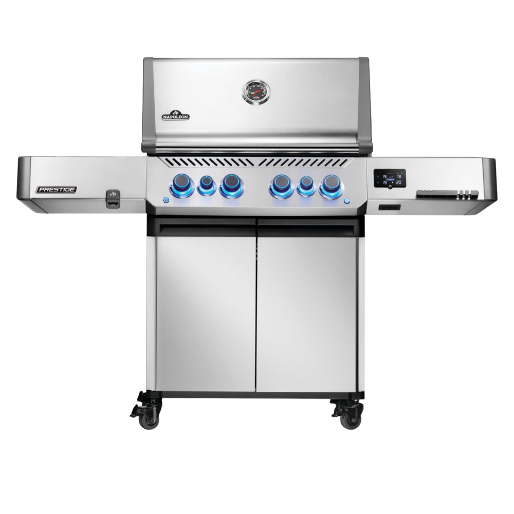 Take control of outdoor cooking with the Napoleon Prestige 500 Connected Gas BBQ. This premium propane barbecue combines powerful performance with smart technology for effortless grilling. Monitor temperatures, receive cooking alerts, and manage your barbecue remotely using Wi-Fi and Bluetooth connectivity. The integrated LCD display and included probes keep you informed at every stage.