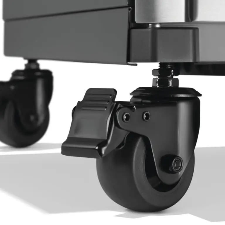 Industrial locking casters allow easy movement while keeping the grill stable during cooking.