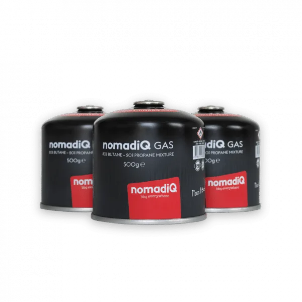 The nomadiQ gas bottle has been specially developed for the nomadiQ BBQ. This is slightly larger than the average gas bottle (500 grams instead of 445 grams), so you can barbecue with it for longer. The gas bottles are available as a 3- or 12-pack.