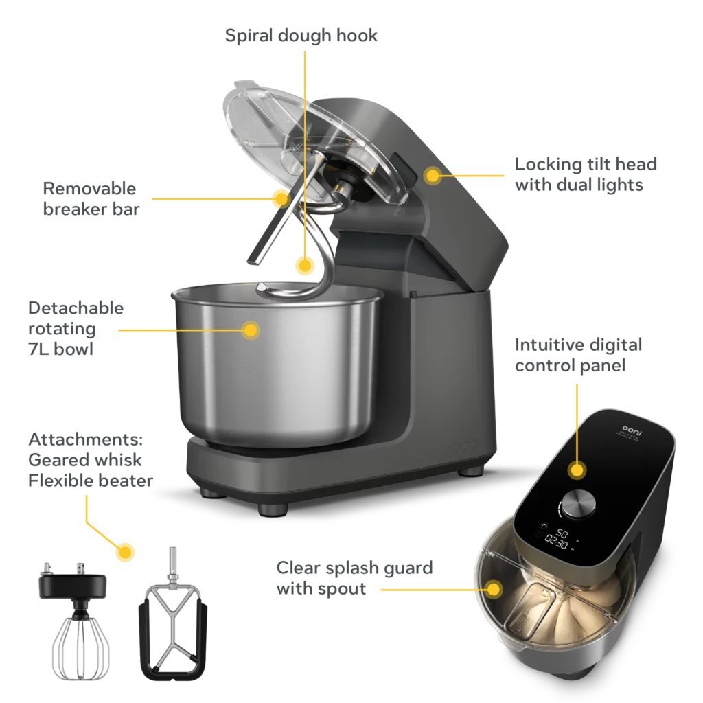 Unlock next-level dough quality with the Ooni Halo Pro Spiral Dough Mixer. With professional spiral mixing, 58 precision speed levels, and a 7-litre capacity, this is the ultimate kitchen countertop mixer for serious home bakers and pizza lovers. Ditch the stand blender—use the Ooni’s revolutionary mixer.