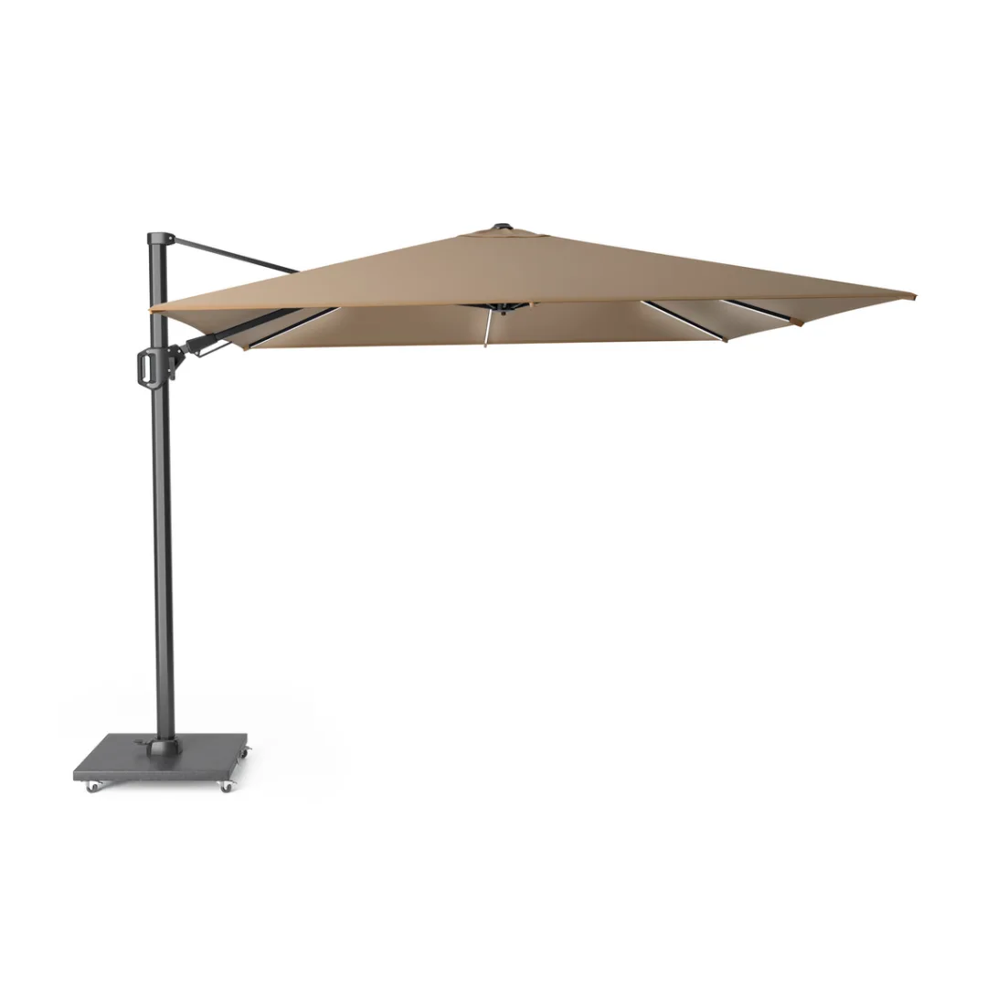 Platinum presents the Challenger T² Glow Garden Parasol Cantilever 300x300cm in Taupe colour. This tastefully designed parasol features atmospheric warm white LED lighting in the ribs, offering a luxurious look that can be directed both upwards or downwards. The LED lights can be operated remotely for added convenience.