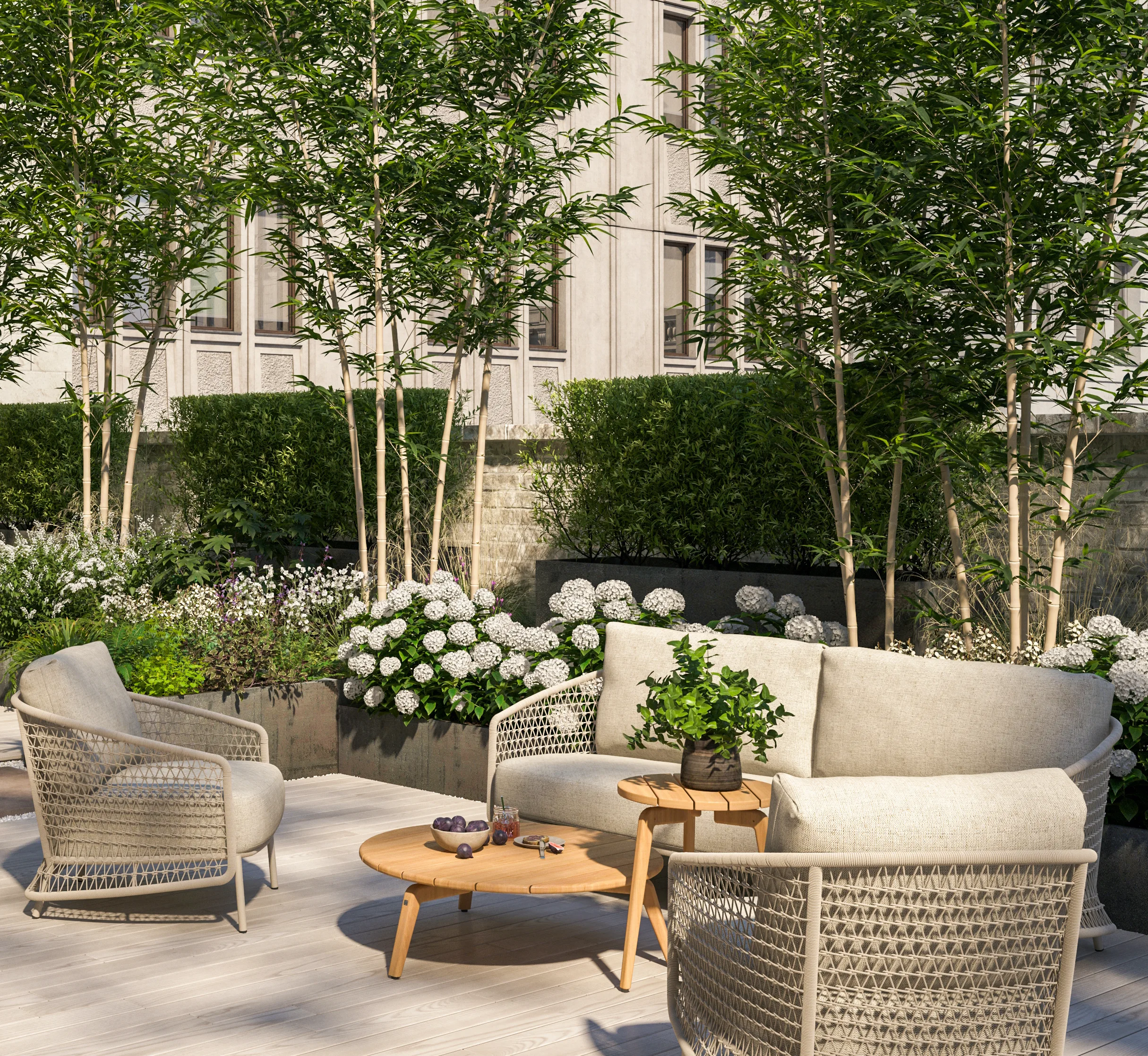 To add to your experience, we also offer superb Zucca outdoor dining tables. Coming in a large coffee table or smaller side table. These tables are made from sustainable teak, incredibly durable, and have a retro look.