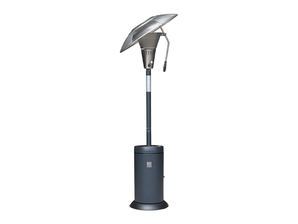 A unique and innovative new Gas Patio heater. The Sahara X13 Patio Heater keeps you from wasting heat and making sure you and your guests are comfortable on the chilliest days and nights. Using a unique Aluminum reflector. You can tilt your heater at any angle and keep the heat focused on one area. Use the included heat control to keep the heat comfortable and light up near-instantly with electronic ignition. You can also place it anywhere in your garden or on your patio with easy mobility thanks to the included wheels. With an oven-baked powder coating ensuring protection this patio heater is built to last. This outdoor gas heater is ideal for a small or medium patio.