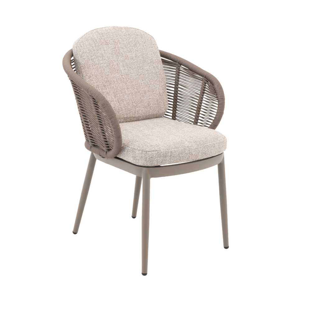 Create a warm and modern outdoor space with the Santorini Dining Chair – Taupe. Featuring breathable rope, a durable aluminium frame, and all-weather cushions, this outdoor dining chair is perfect for Irish patios and gardens.