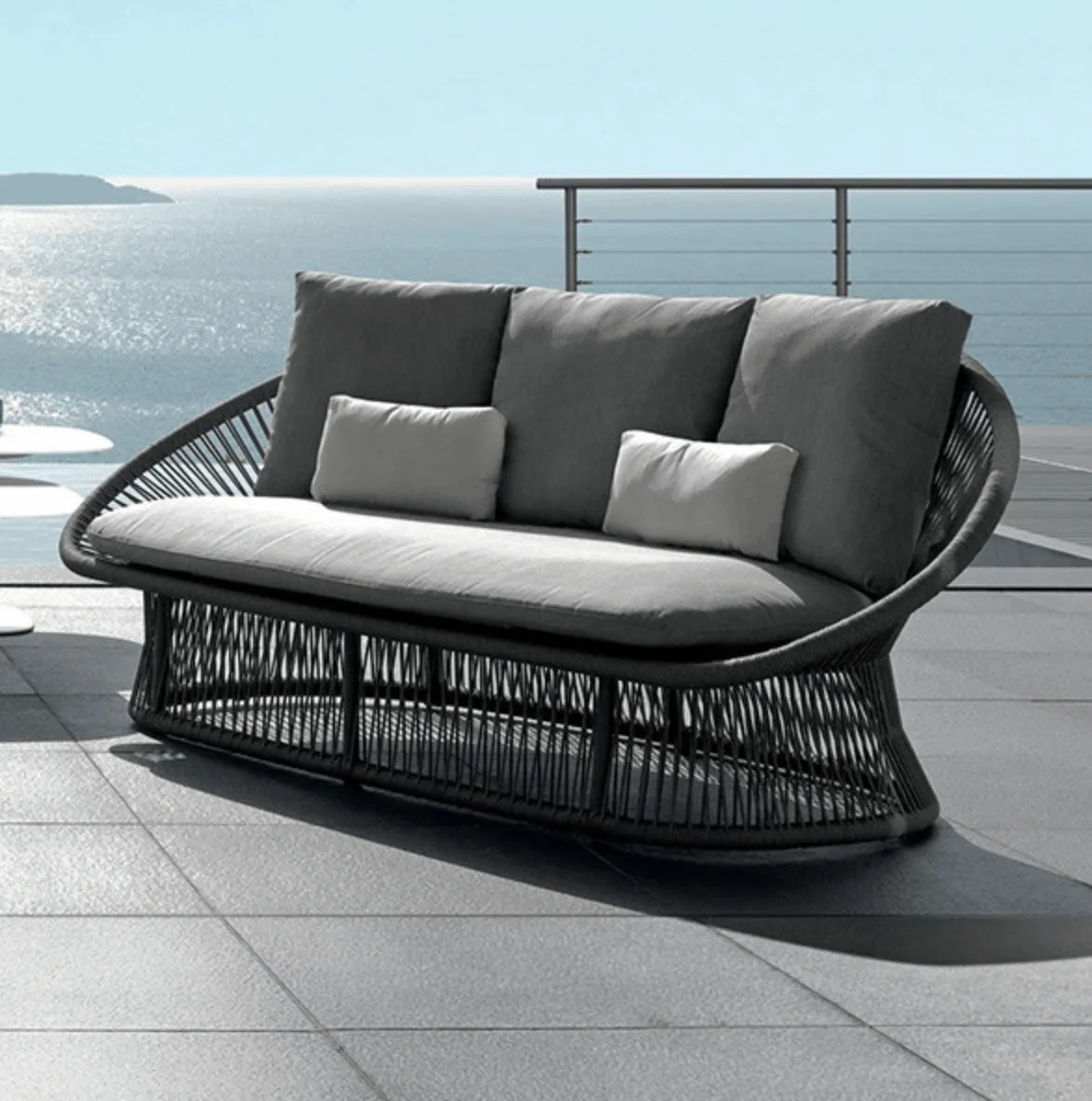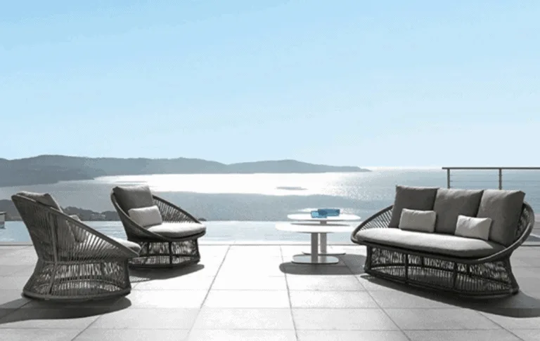 The Spade Aluminum Round Rope Outdoor Furniture Collection offers a stunning contemporary set perfect for a small family. This collection includes a handwoven rope sofa, matching chairs, and an elegant oval coffee table, combining comfort, craftsmanship, and style.