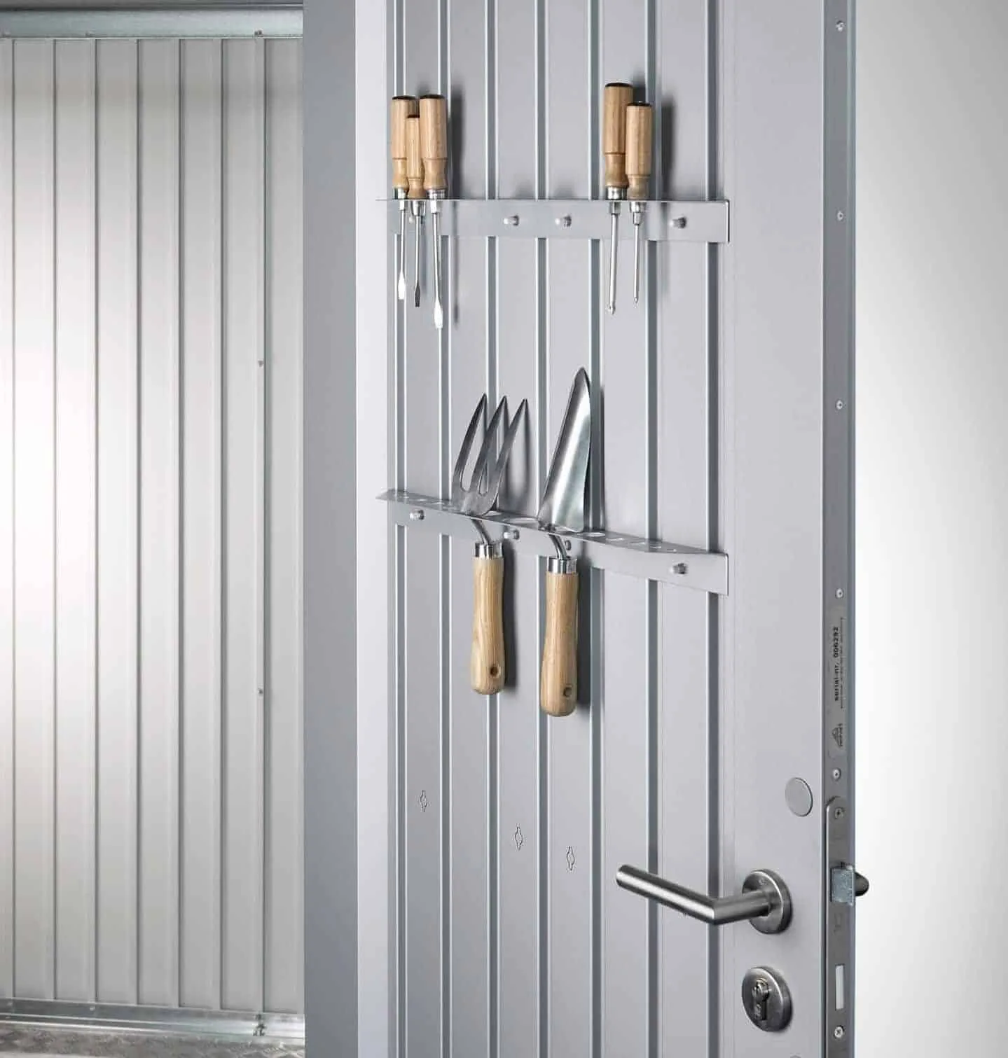 Standard equipment: 2 tool holders. The tool holder is available for the Highline and AvantGarde sheds and can be purchased in colour to match your shed.