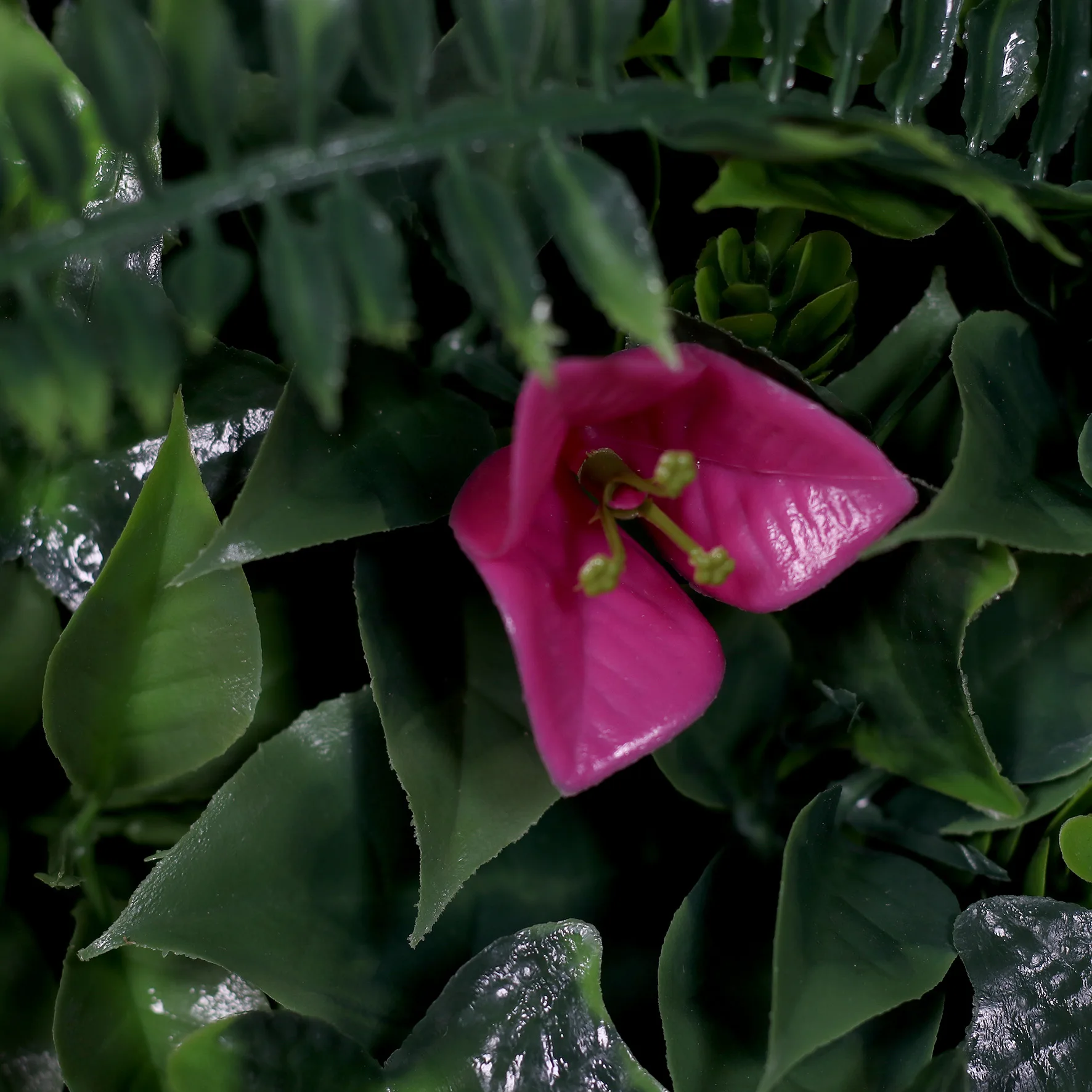 Transform your environment with the stunning UV-protected green Wall Mat with Pink Blossoms, a 50x50cm artificial hedge panel that combines lush greenery with delicate pink flowers for a truly captivating look. This wall mat is perfect for adding a splash of color and natural beauty to any indoor or outdoor space.