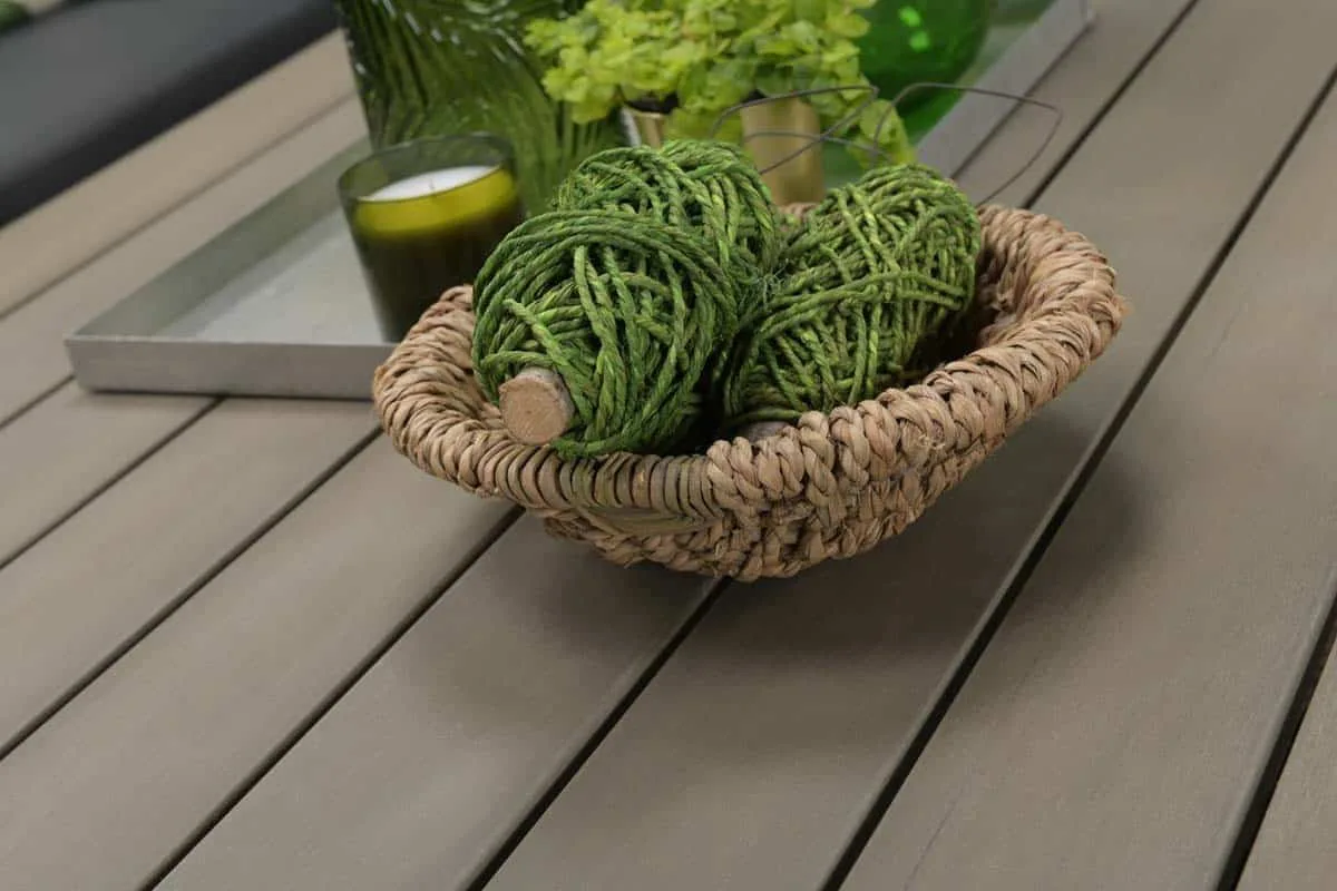 Built to withstand rains and stains, the rust-resistant aluminium inner frame provides sturdy support for the hand-braided wicker exterior in vintage willow, adding a touch of elegance to any outdoor setting. The tabletop, crafted from Polywood, offers the appearance of real wood with minimal maintenance required.
