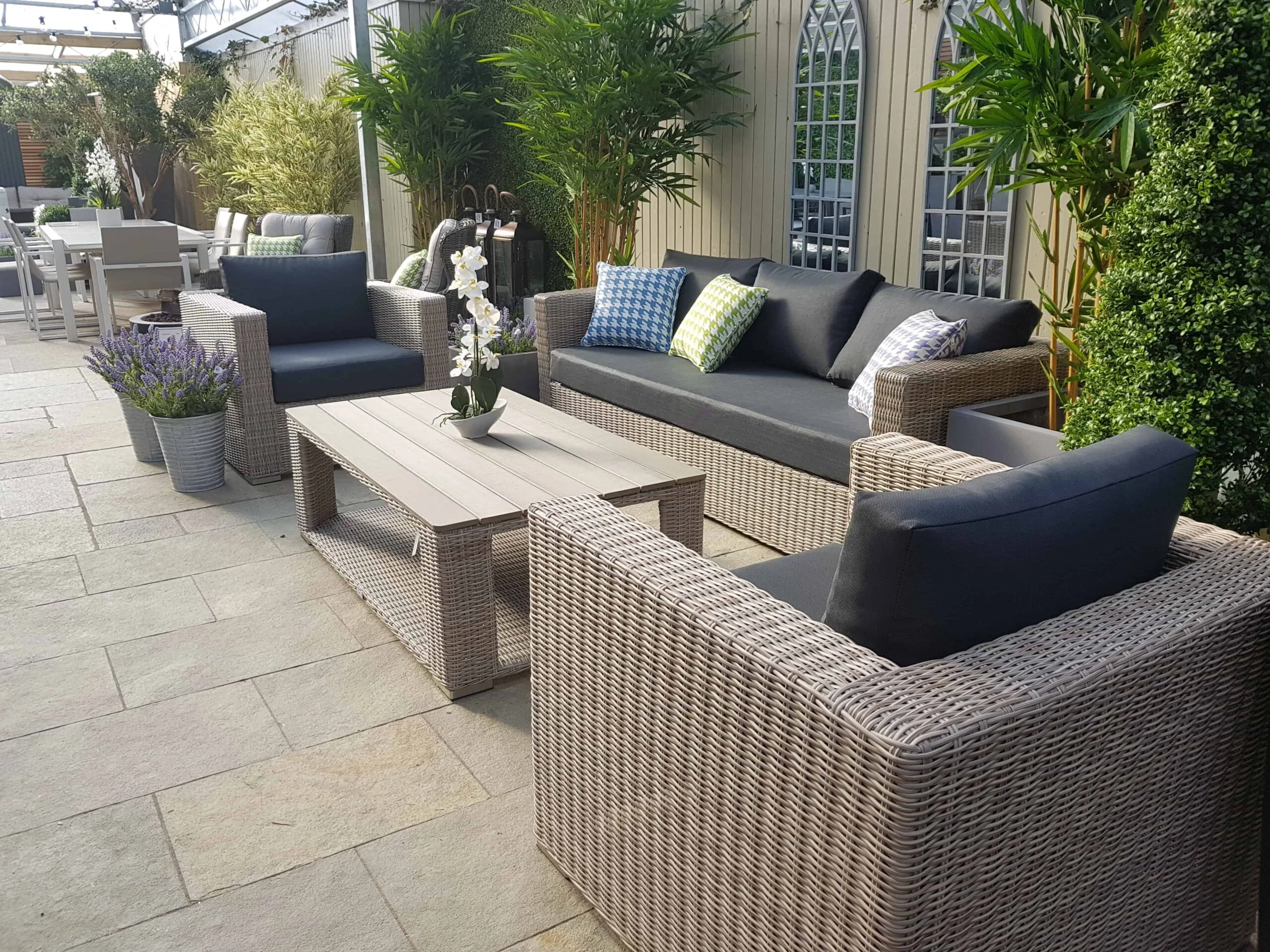 • Plastic wicker around sofas and table is strong, easy to maintain and resistant to various weather conditions