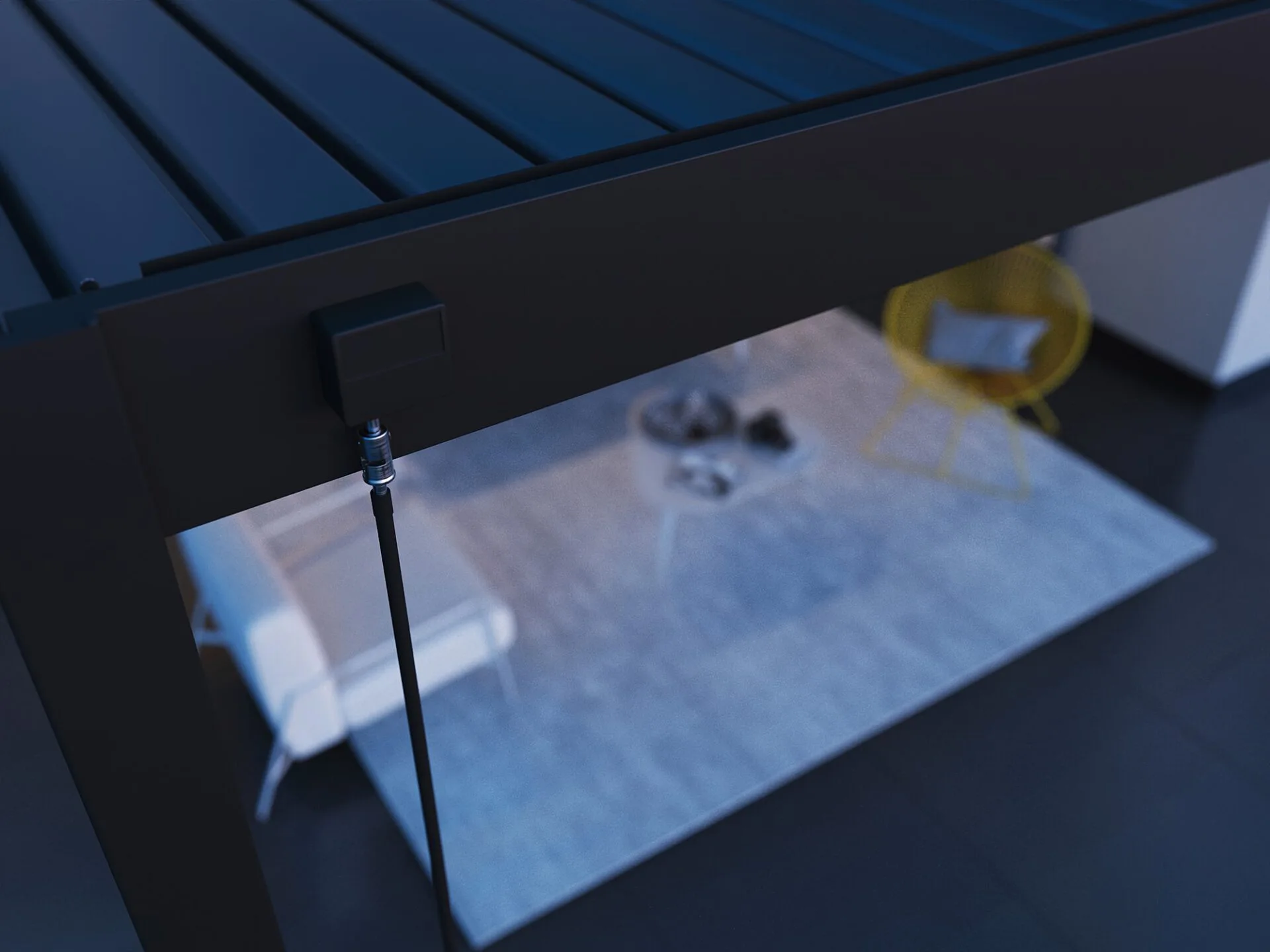 This pergola comes with manually adjustable roof louvers, giving you full control over sun, shade, and airflow. Whether you want to soak up the sun or find cover from light rain, the Pergola with roof adapts to your needs. Hidden joints and clean lines preserve the frame’s contemporary look.