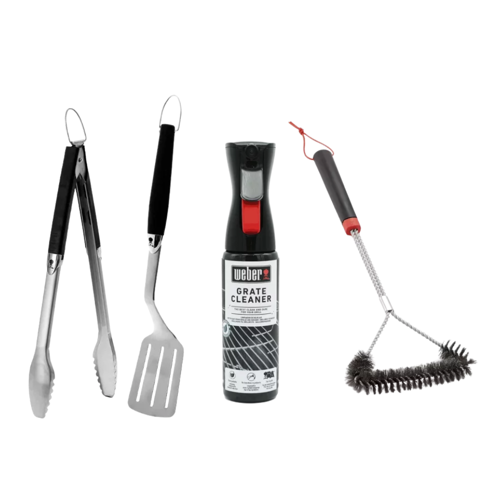 Transform your barbecue experience with the Weber Barbecue Essentials Kit, a complete set of grilling tools and cleaning essentials to elevate your outdoor cooking. Featuring a versatile three-sided brush, a sturdy 2-piece toolset, and a powerful grate cleaner, this kit has everything you need to effortlessly grill, clean, and maintain your barbecue, ensuring a hassle-free grilling experience.
