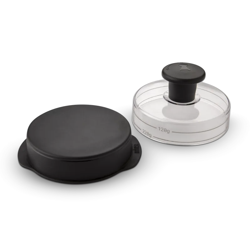 The Weber Original Burger Press is a versatile tool that can be used to form quarter and half-pound patties, has a removable handle, and is designed to make a dimple in each patty for flat, uniform burgers. It’s easy to use, versatile for different grill setups, and can help you make burgers that are evenly shaped and cooked to perfection.