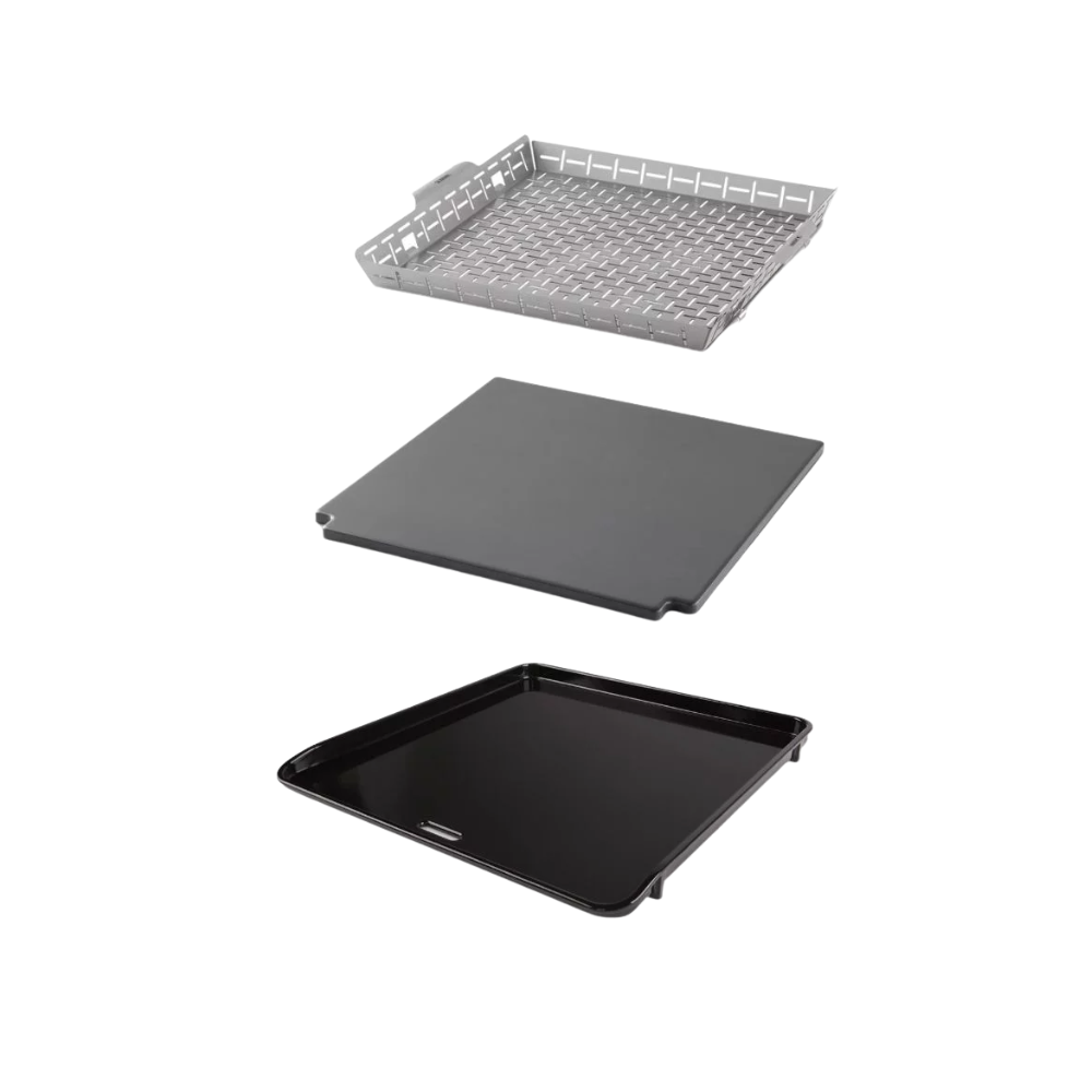 Elevate your outdoor cooking experiences with the Weber Crafted Barbecue Kit, a versatile set of grilling accessories that expand the culinary possibilities of your barbecue. This kit includes a glazed baking pizza stone for pizza perfection, a flat top for searing steaks and sizzling veggies, and a roasting basket for grilling delicate seafood and vegetables. Whether you’re a pizza aficionado, a grill master, or a backyard chef, the Weber Crafted Barbecue Kit has everything you need to create memorable meals that will impress your friends and family.