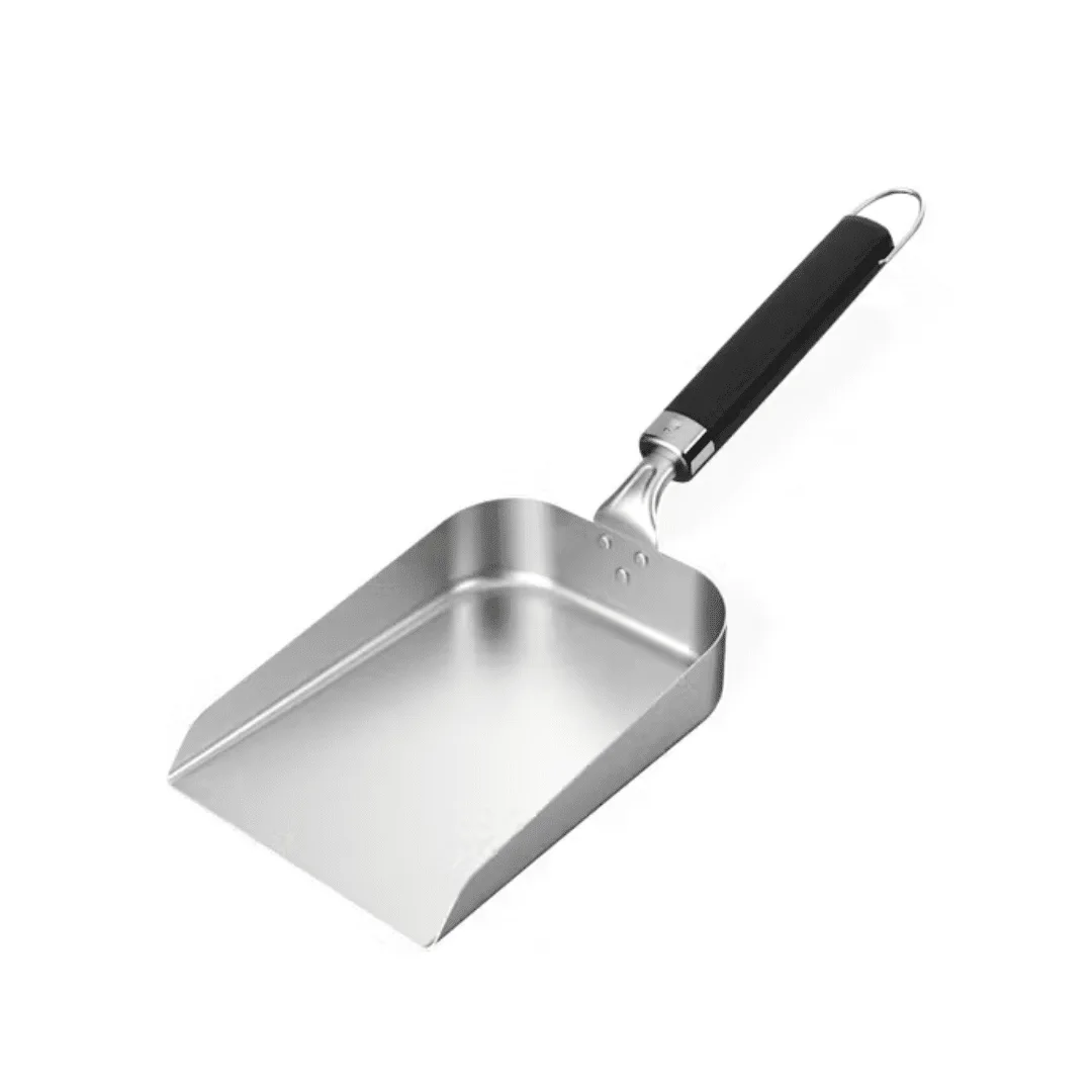 The Weber Griddle Scoop makes flipping and serving griddled food easier than ever. Its wide stainless steel design allows you to scoop large portions of smaller foods like fried rice, vegetables, or hashbrowns. Raised edges prevent spills, and the non-slip handle ensures a steady grip. Dishwasher safe for easy cleanup.