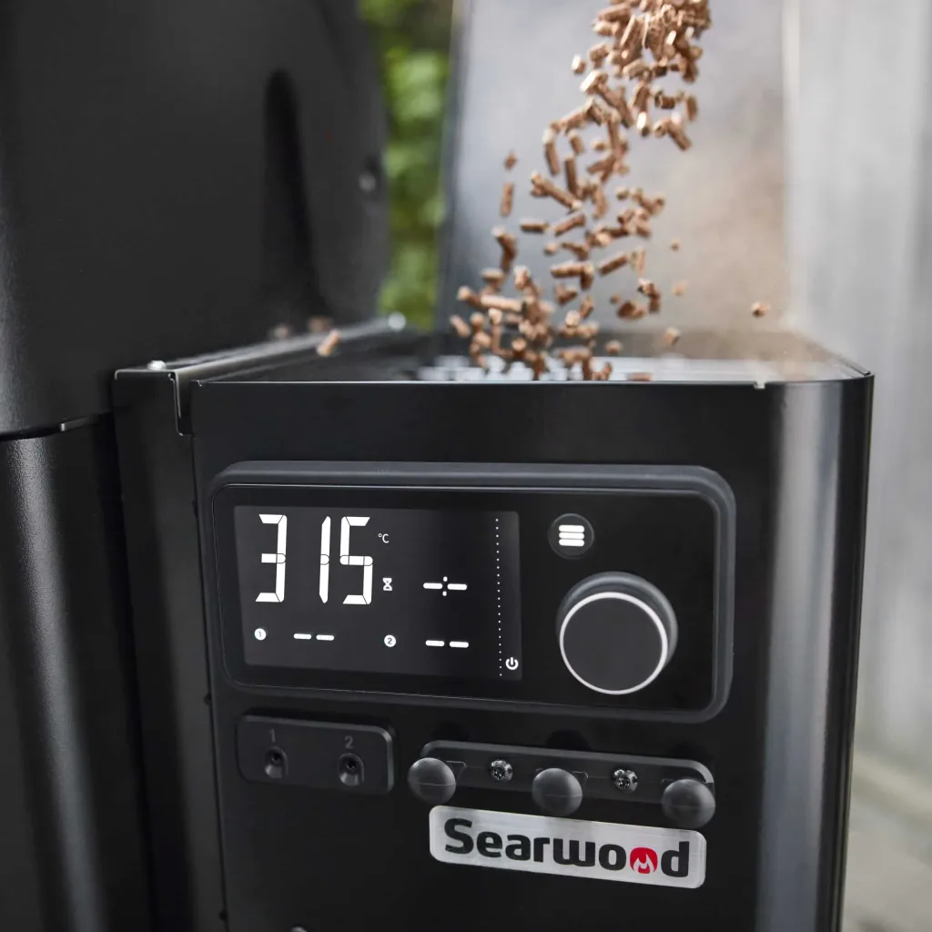 With a generous 6,270 cm² cooking capacity, the Searwood XL accommodates everything from multiple chickens on the top rack to a whole brisket. The removable 24cm top shelf creates extra space for large roasts.