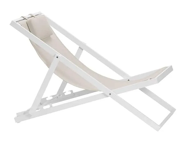 The ‘Xanthus Sling Deck Chair – White Frame’ can be bought online only